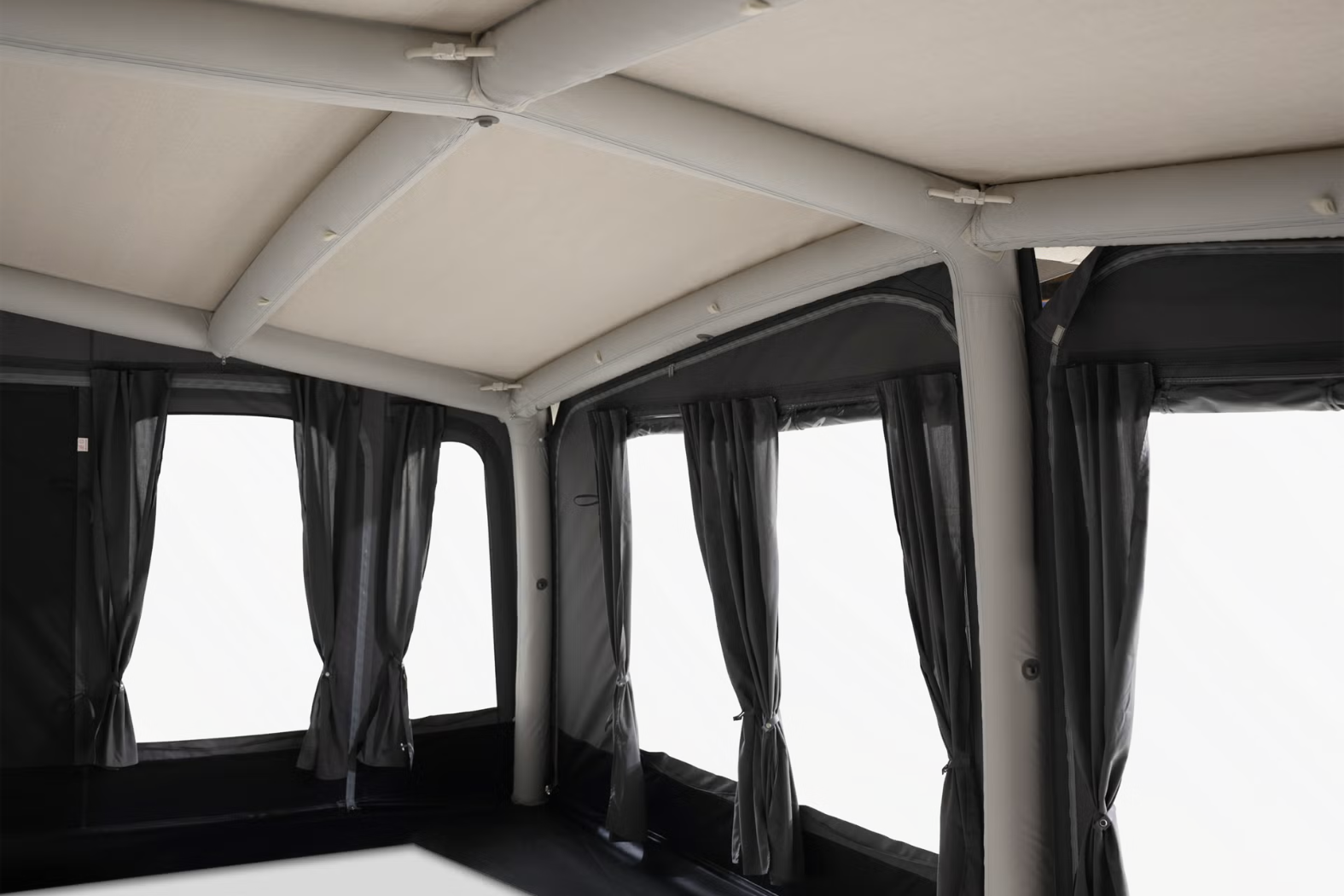 The Residence AIR Stay features Weathershield™ Stay fabric, which blends ripstop polycotton walls with a dope-dyed polypropylene roof. This combination ensures breathable walls, reliable waterproofing, and lasting durability. It includes zip-out panels and panoramic windows that flood the interior with light, while integral blinds let you control privacy and shade. The frame is inflatable, and pitching is simplified by single-point inflation, reducing setup time.