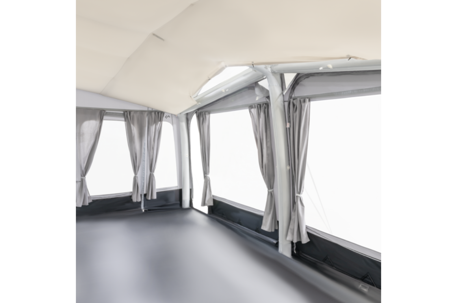 This touring awning adapts to a range of caravan connection heights, making it compatible with multiple models. Inside, you’ll find contemporary blinds and soft-touch curtains running on an easy-slide track, giving you control over light and privacy. Reinforced seams, reliable zippers, and strong pegging points ensure long-term durability, even under regular use.