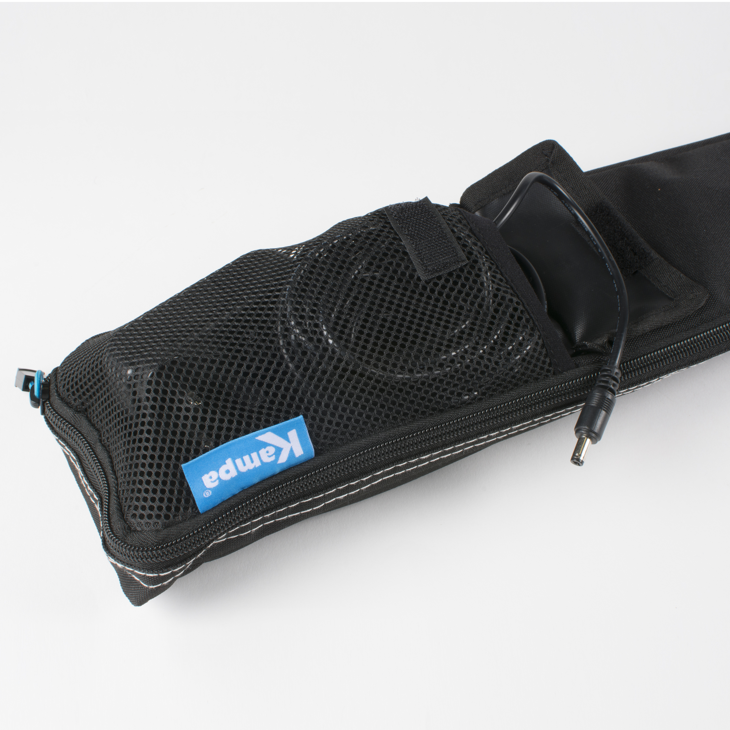 Pocket for accessories such as power lead and remote