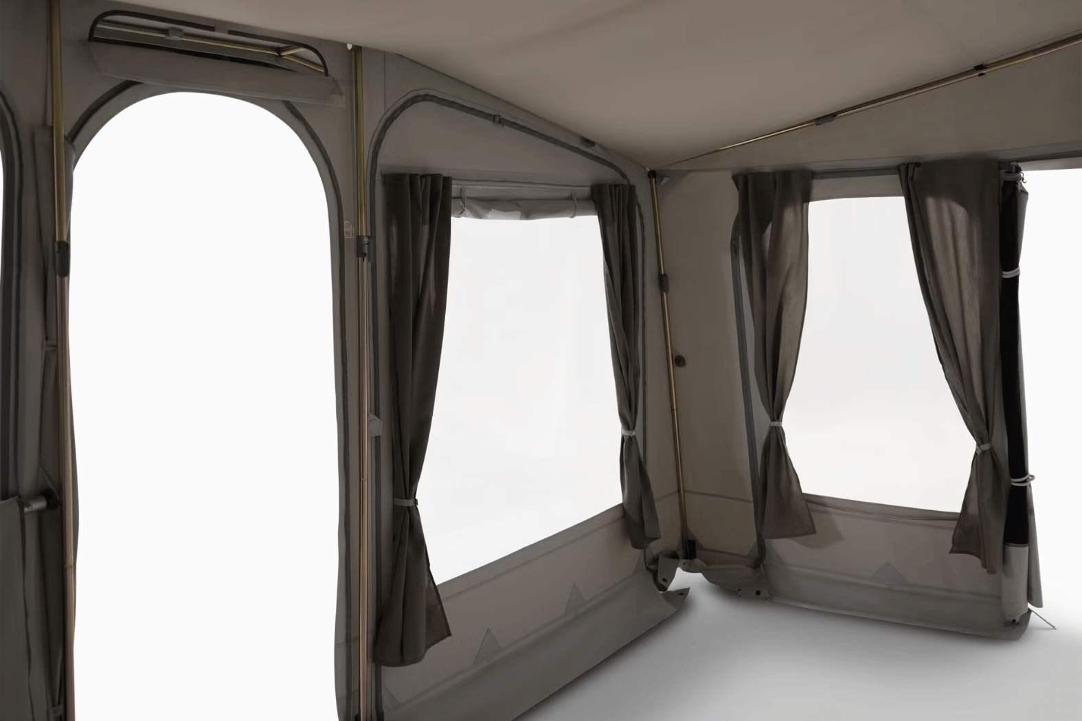 Crafted with Weathershield® Rest/dope-dyed polypropylene, the Stuga Rest is inherently UV-resistant, waterproof, and easy to clean. Because the fabric is dope-dyed, the colour permeates the material, reducing fading over time. The awning’s structural design includes apex ventilation and large windows with zipped blinds, giving you precise control over airflow and light.