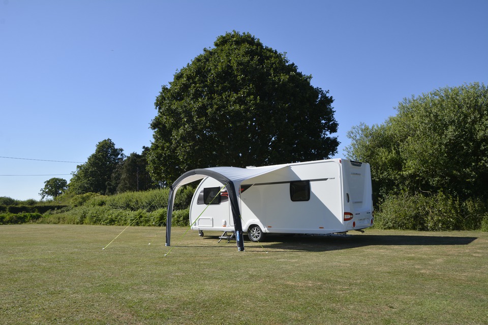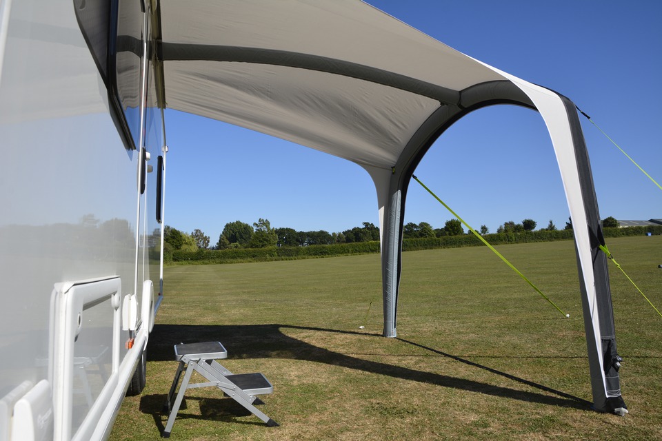 Sunshades are notorious for catching the wind and, in the worst case scenario, metal frames can damage the caravan. There’s no such problems with the Kampa Dometic Sunshine – the soft poles inflate in seconds and will never damage the caravan. After the quick set-up, the sunshade gives a generous sheltered area in which to relax.