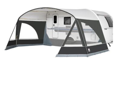The Dometic Sunshine Air Pro VW Canopy gives side-door shade and shelter designed specifically for VW campervans. With a size of 240 × 195 cm, it offers generous coverage without overwhelming your van. It fits rail heights between 180-210 cm, so it integrates neatly with most VW models without interfering with doors or windows. Because the over-door arch and front bracer beam add height, you still have good headroom as soon as you step out.