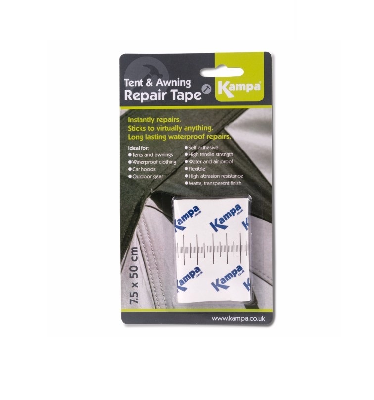 The tape will stick to natural and synthetic fabrics including nylon, polyester, vinyl, rubber, plastic & canvas. Ideal for repairs to tents, awnings tent windows, inflatable products including tents, toys, airbeds, self inflating mattresses, waterproof clothing, wellingtons, boots and shoes, car hoods, bicycle tyres, sleeping bags, horse rugs, umbrellas, sails, bags, paddling pools, water sports, fishing & hunting gear.