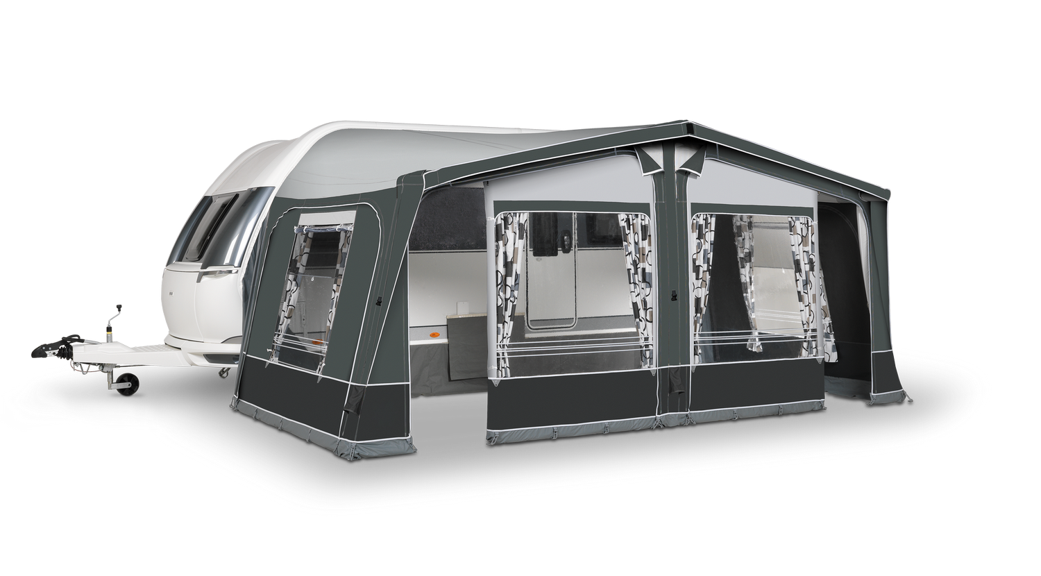 Space and comfort of a traditional full awning incorporating Dorema’s EAF (easy air frame) system for ease and speed. The main Air frame quickly inflates from one valve and deflation is simple and rapid by just removing three valves. The main frame consists of 3 x L-shaped roof/leg air tubes that are connected to 2 x apex air tubes.