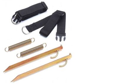 The front panel rolls down or zips out, so you adjust shade and light as needed. Side panels include doors, part fly-screens, and rear cushion pads for comfort and protection. Also, permanent ventilation in the ridge of the front panel reduces internal condensation. Because mud-walls can peg internally or externally, you can adapt to different weather conditions to keep your inside clean.
