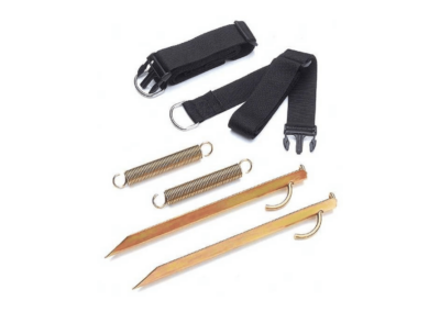 Contents: 3 x high-tension straps, 3 x high-tension springs, 3 x large steel pegs.