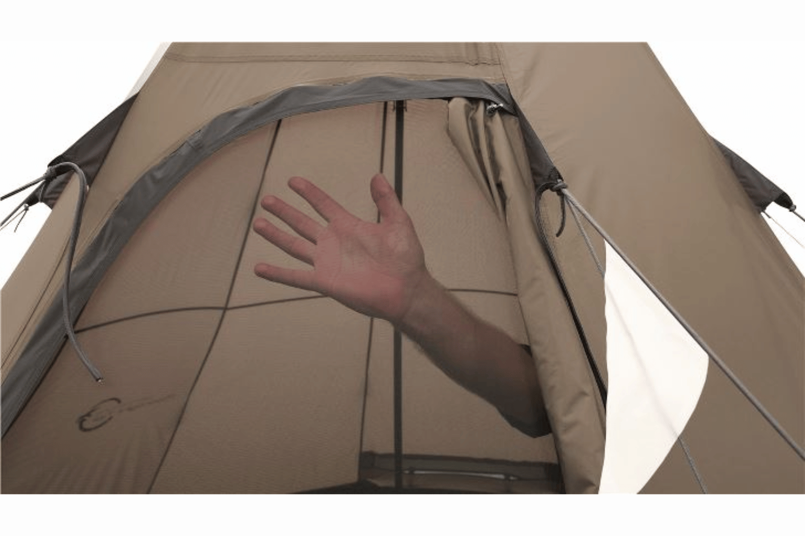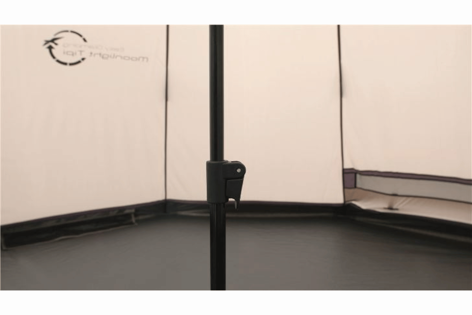 Sleeping up to eight glampers in a classic, fast-pitching design with a central steel pole, the Easy Camp Moonlight Tipi Tent offers the size and freedom for families and friends to create intimate spaces, connecting them with the natural world and having fun outdoors. Easy access is guaranteed through the fold-flat entrance with double slider zippers on the door for flexible opening and a full mesh door behind. Mesh vent under the apex hood, with a plastic ring to hold its shape and low covered vents ensure ample ventilation and easily adjustable fresh airflow.