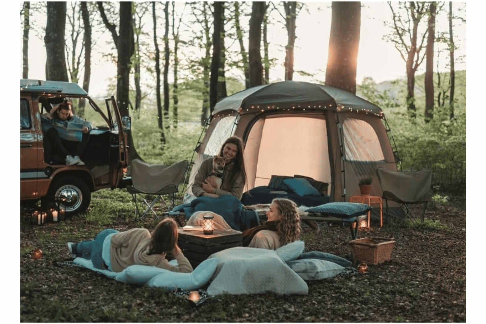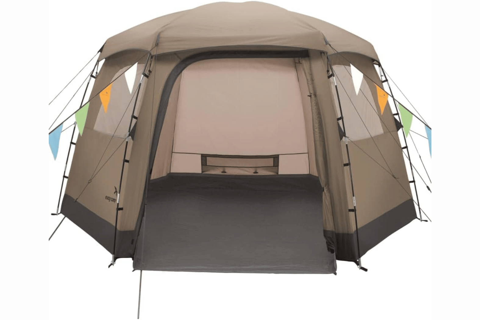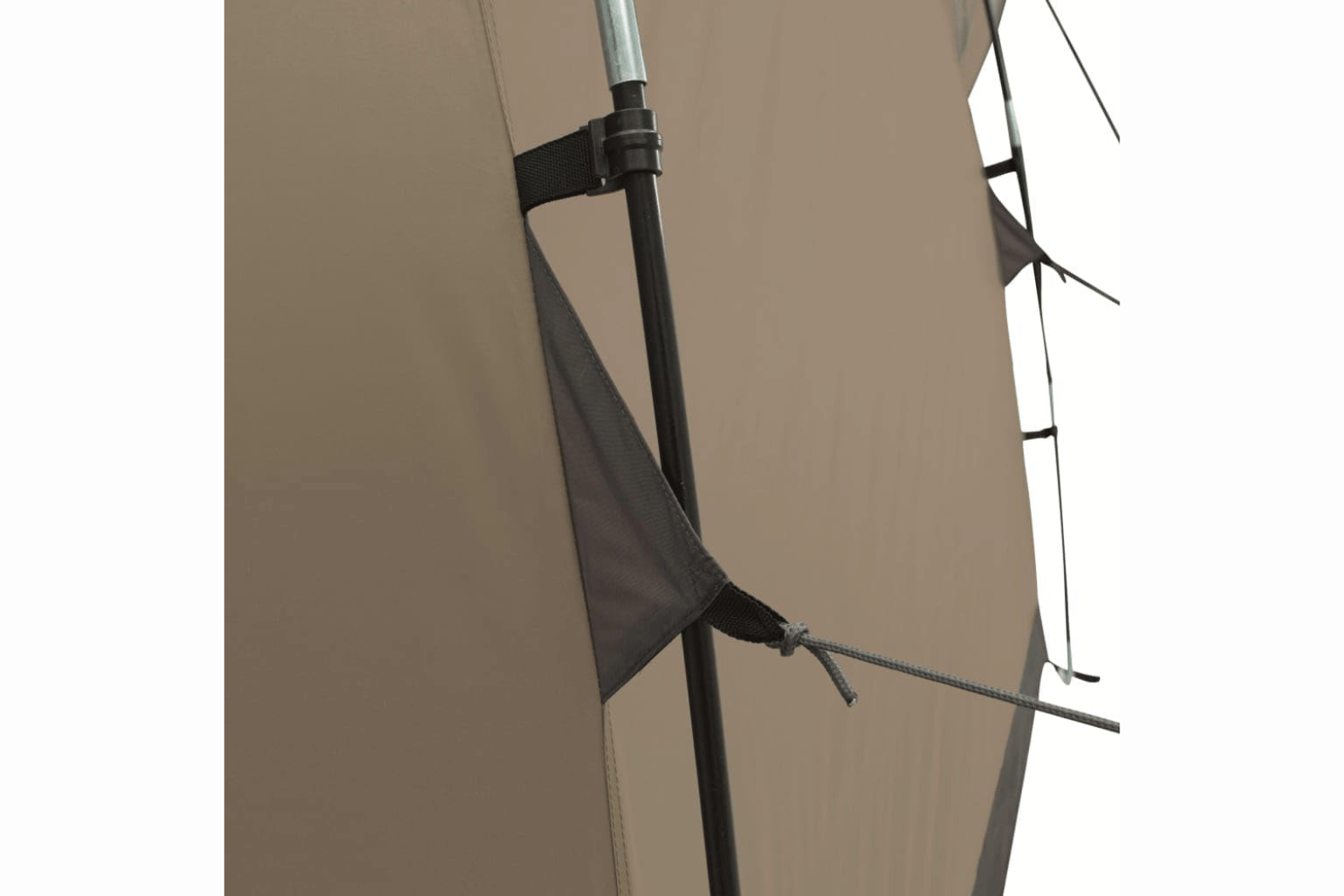 Sleeping up to six glampers, with pre-angled FRP poles ensuring full headroom throughout, the 6-Person Easy Camp Moonlight Yurt Tent offers the size and freedom for families and friends to create unique spaces, connecting them with nature and sharing fun outdoors. PVC windows deliver internal light, with toggle-up curtains for privacy, whilst easy access is guaranteed through the wide, fold-flat entrance with double slider zippers on the door for flexible opening. Large mesh panels under the flysheet cap, a mesh window in the door, with a toggle-up curtain and covered rear vent ensure ample ventilation and easily adjustable fresh airflow.