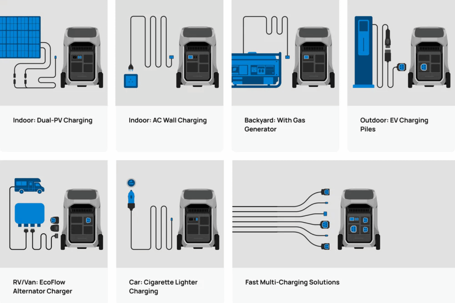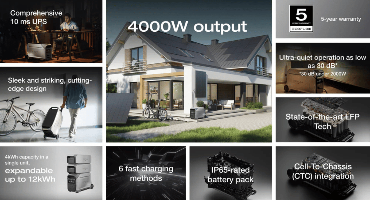 DELTA 3 Pro powers almost all the devices you need with a large 4000W AC output. Plus, with X-Boost proprietary technology, run appliances with an output of up to 6000W. Compared with other power stations, DELTA 3 Pro can power more devices, while still preventing overloading and overheating.
