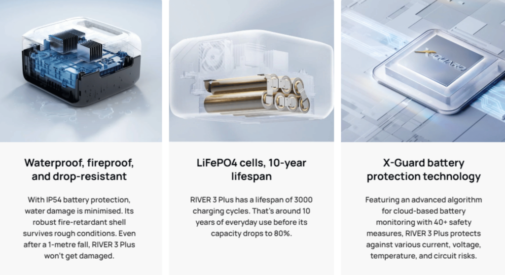 - AC Charging: RIVER 3 Plus fast-charges in 1 hour with X-Stream, without causing battery damage due to vehicle-grade cells and trickle charge technology.