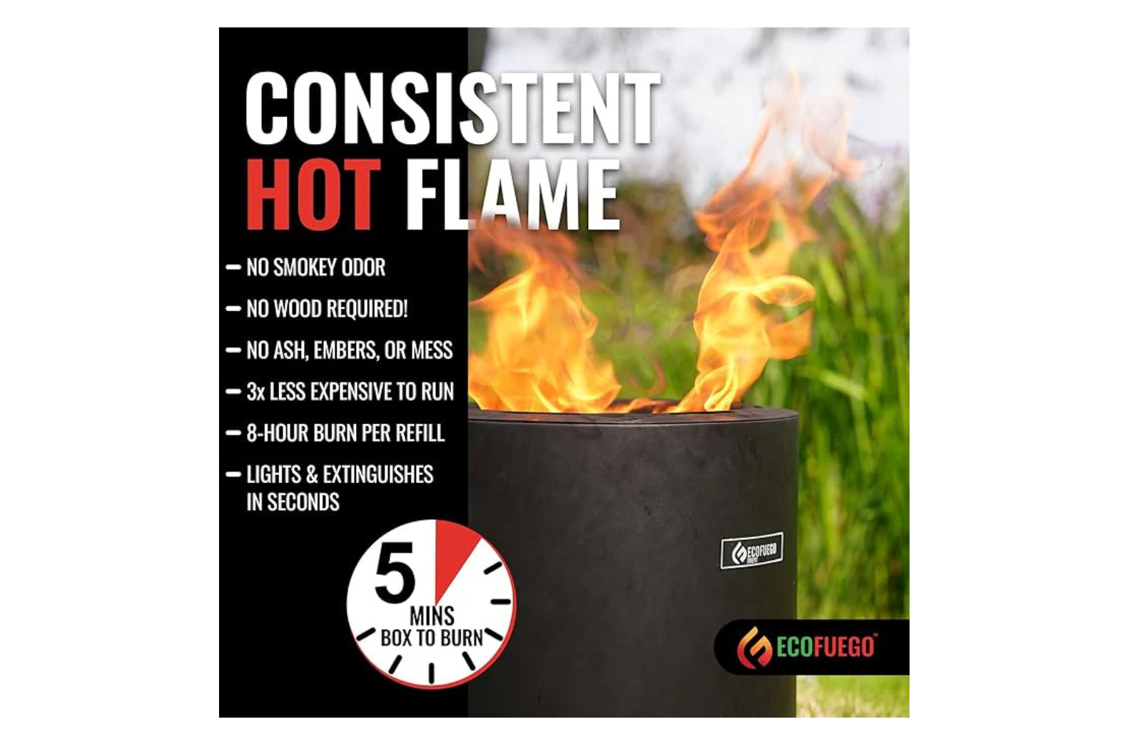 - Smokeless & Low-Emission Flame: Cleaner alternative to wood fire pits.