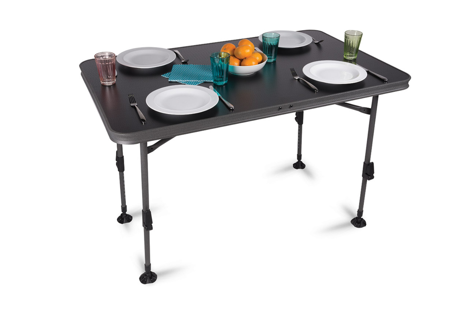 The Kampa Element Large Camping Table with Adjustable Legs folds flat for quick storage and easy transport. Moreover, the lightweight frame makes it effortless to carry to your pitch or garden. The simple folding mechanism lets you set up or pack away in seconds. In addition, the compact folded size makes it perfect for caravans and motorhomes where space matters.