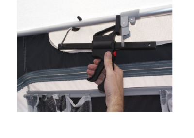 This will securely fix your Privacy Room or the like. This type of storm belt is pushed into the rail of the front box of the awning. Suitable for the F45, F35 and Caravanstore. Can also be attached to the clips on the side of the Privacy Room. Set consists of: 2 adjustable straps of 300cm, 2 ground pins and 2 tension springs, 2 brackets (slide in the rail).
