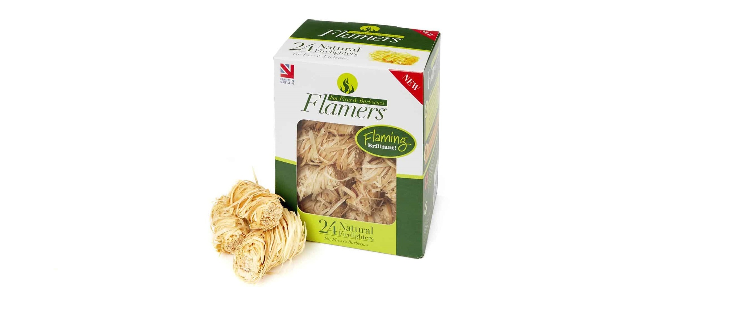These firelighters contain natural wood shavings and are dipped in wax to ensure quick ignition. These are loved by all because they are natural, odourless, easy to light and have a long burn.