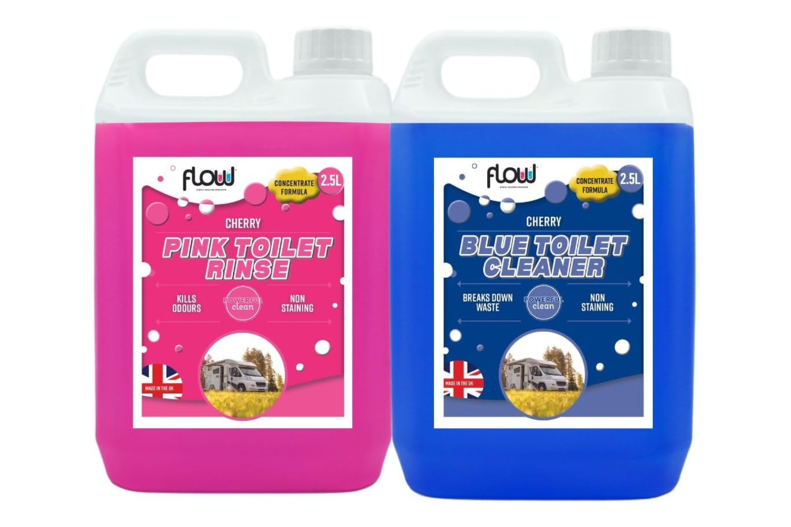 - PINK & BLUE: Toilet Cleaner & Rinse are both premium concentrated formula developed to tackle both parts of the flush system of chemical toilets in the camping, caravanning and boating leisure industry. It can also be used as a powerful cleaner for toilets, sinks, urinals, and washrooms.