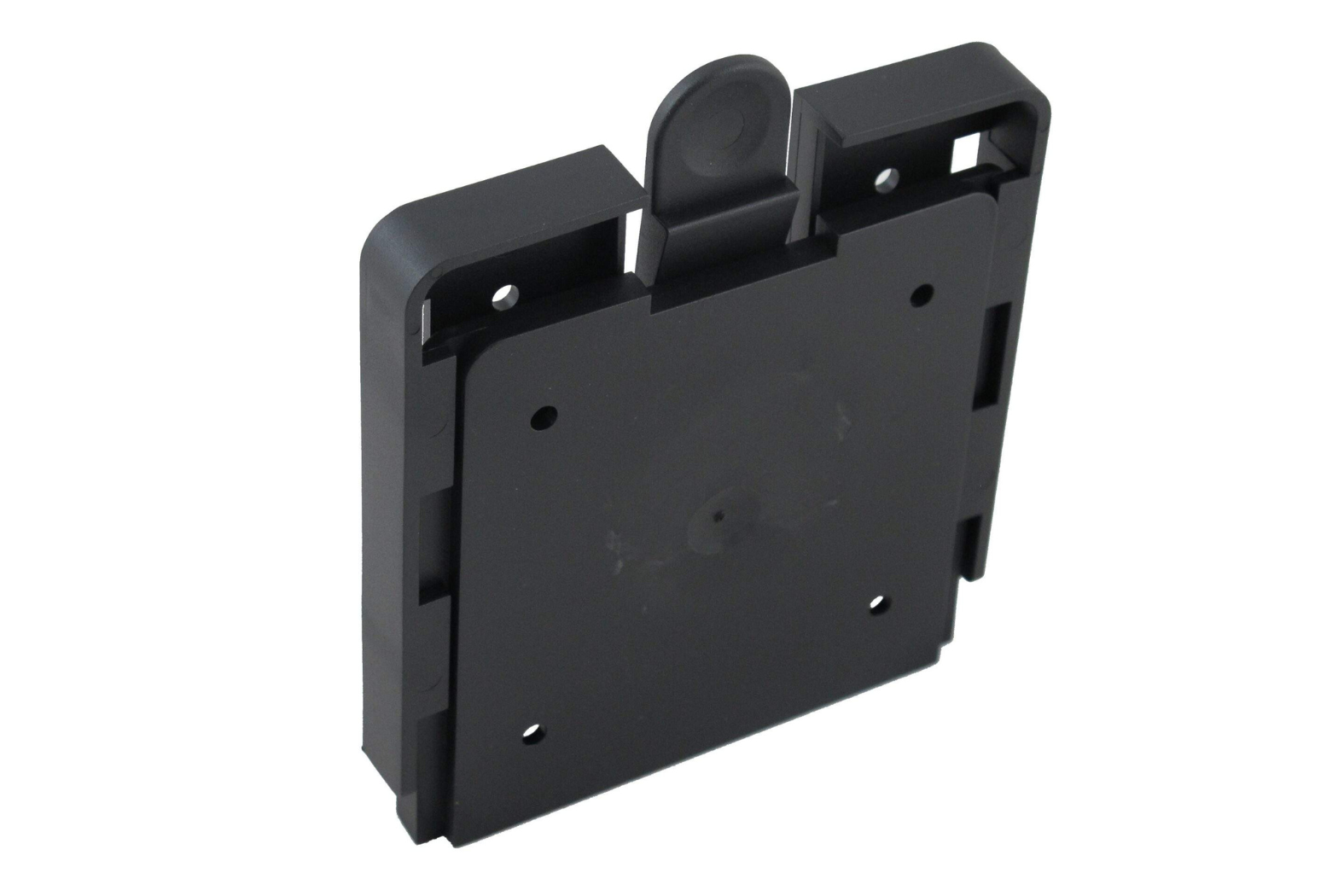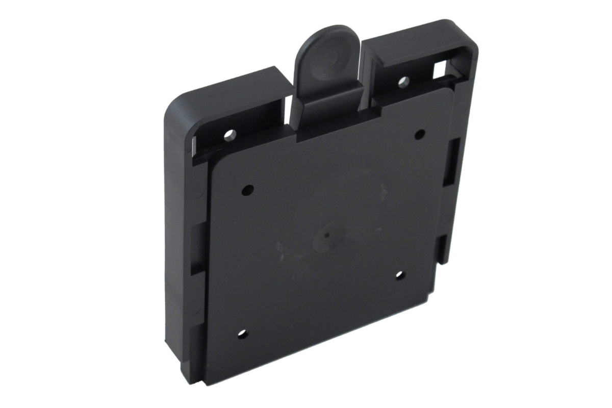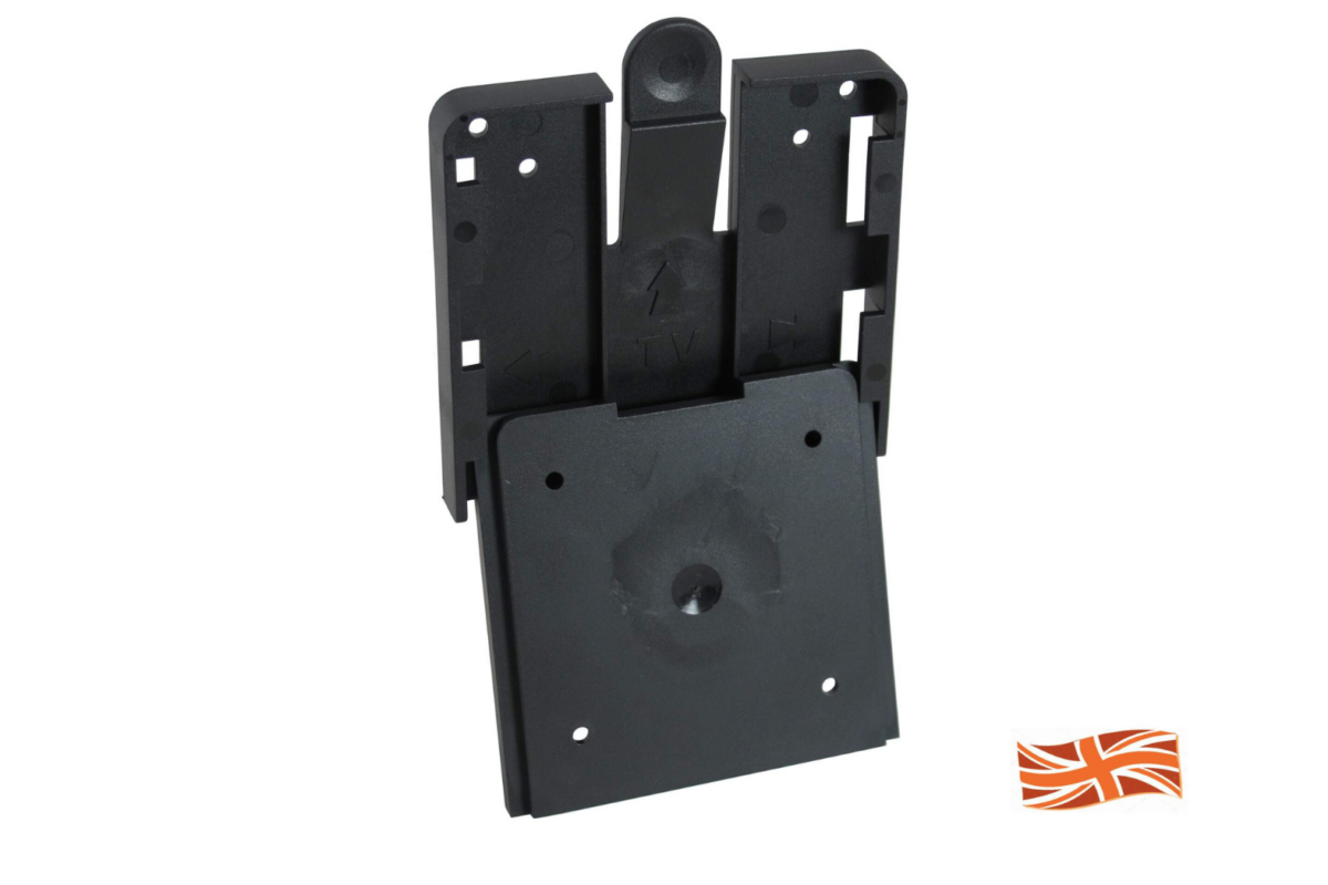 Grade Quick Release TV LCD Bracket Two rigid plastic plates designed to simply slide together between your tv wall mounting bracket and your tv. Can also be used as a wall bracket Fitting Instructions: First plate fixes to your lcd tv Second plate fixes to your wall mount bracket Two plates simply slide together and ‘click’ To remove tv press tab and slide out IMPORTANT: Check screw lengths before attaching to the tv, beware that they are not too long because they could damage the electronics inside the TV.