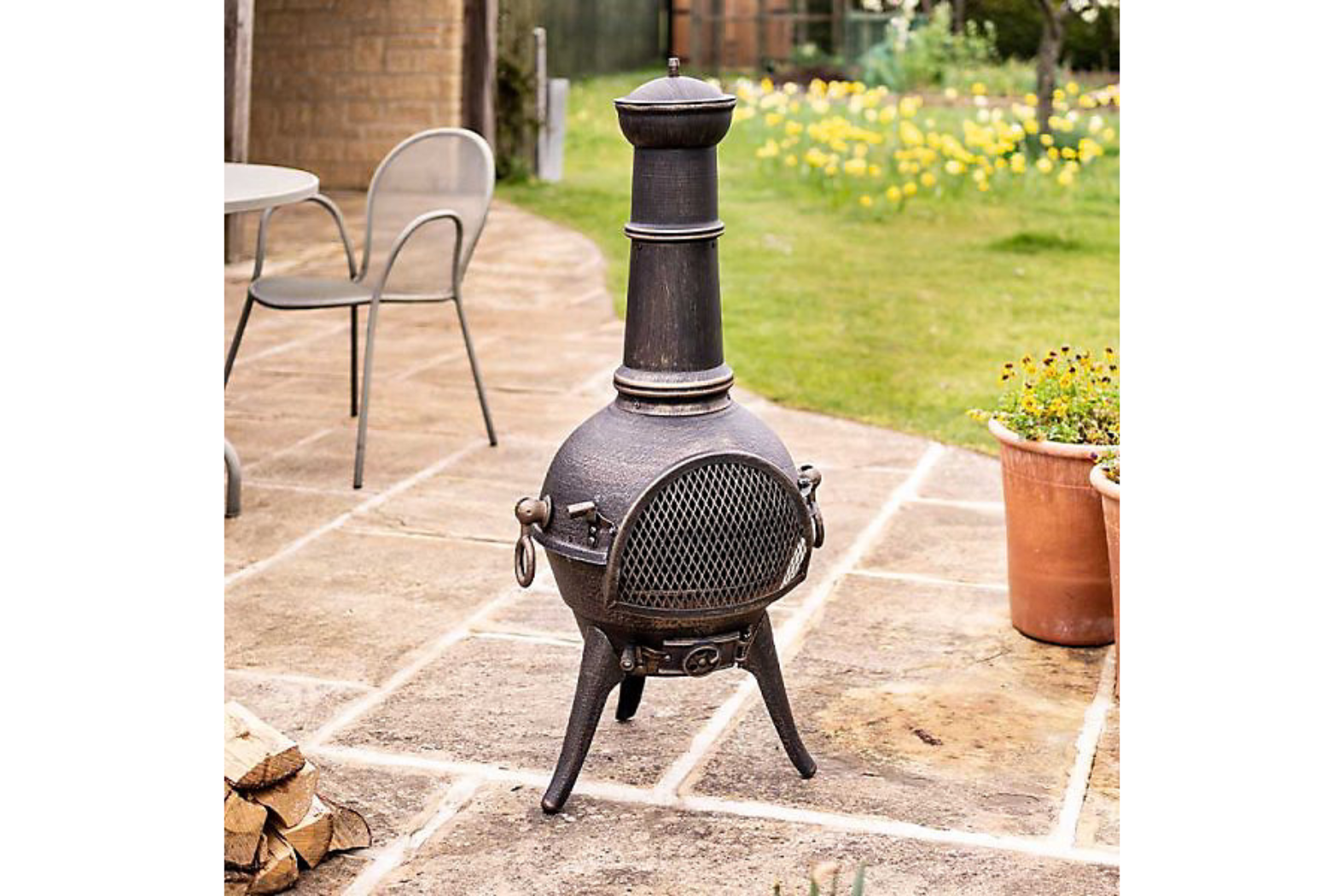 Finished with a hand-painted brushed bronze effect, this chimenea adds a touch of classic sophistication to any outdoor area. The warm bronze tone complements both rustic garden settings and contemporary patios, making it a flexible centrepiece. In addition, the aesthetic appeal ensures it looks attractive during the day and casts a beautiful glow by firelight at night.
