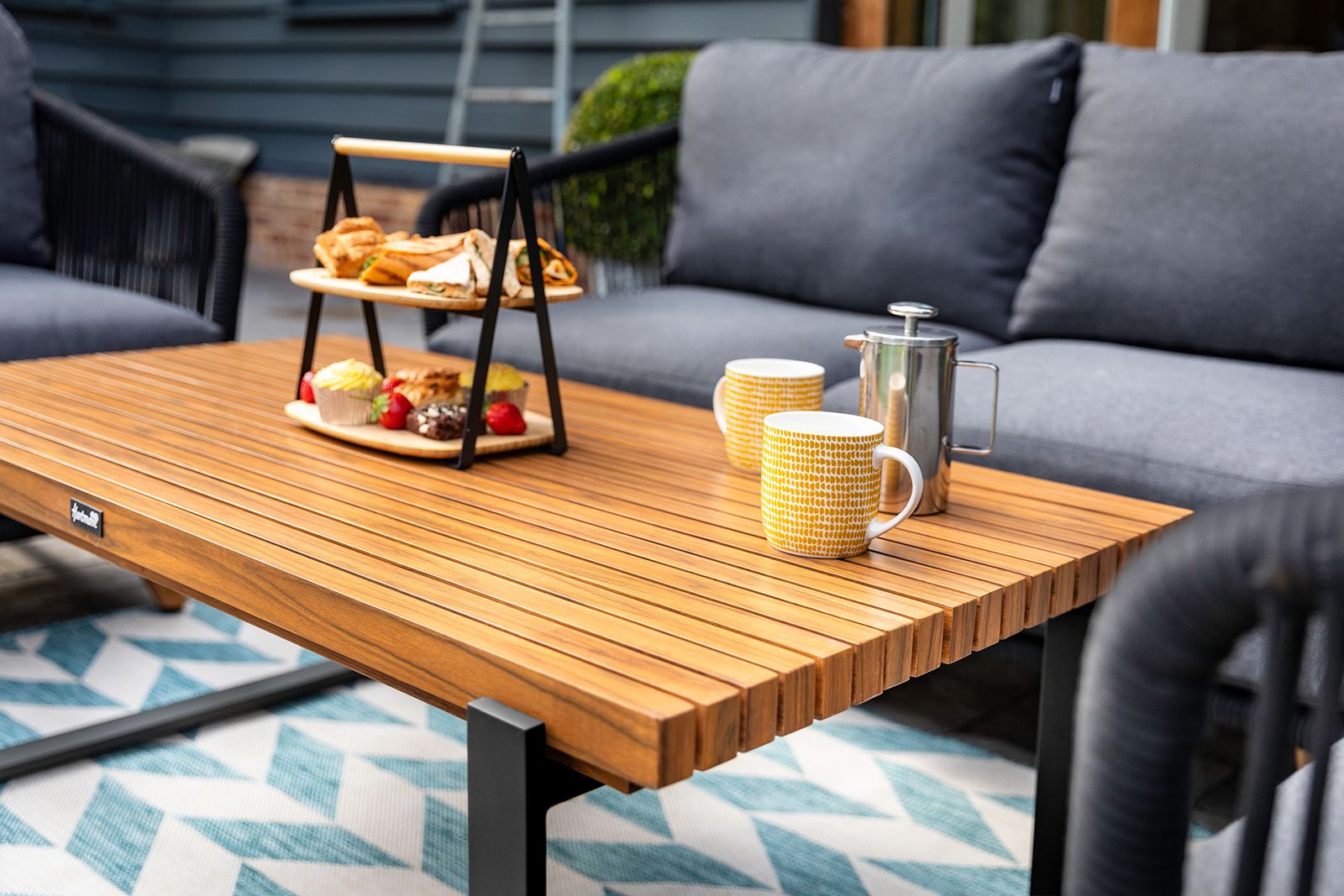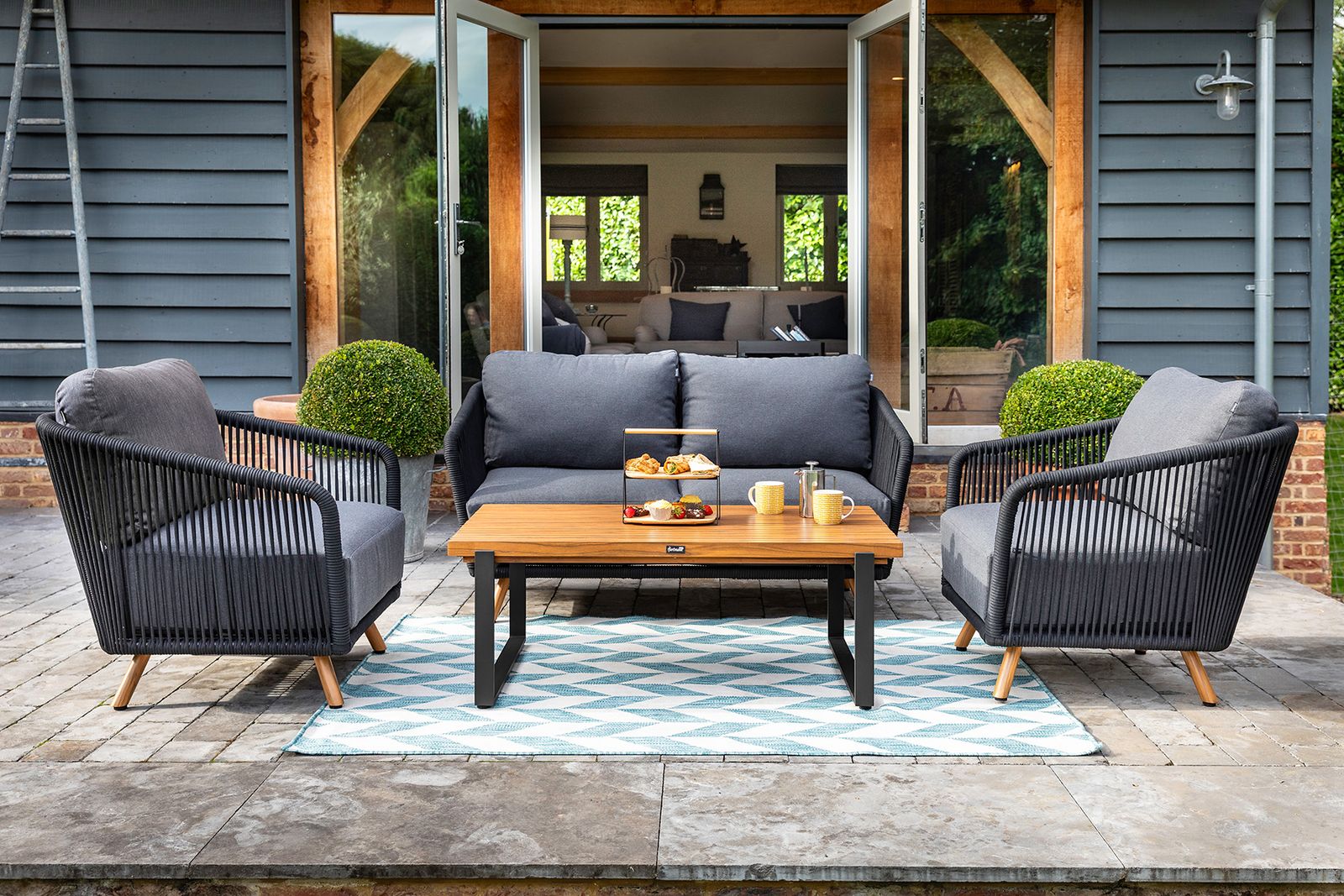 - Modern colour-way: Black Noir rope & cushions, Carbon frame