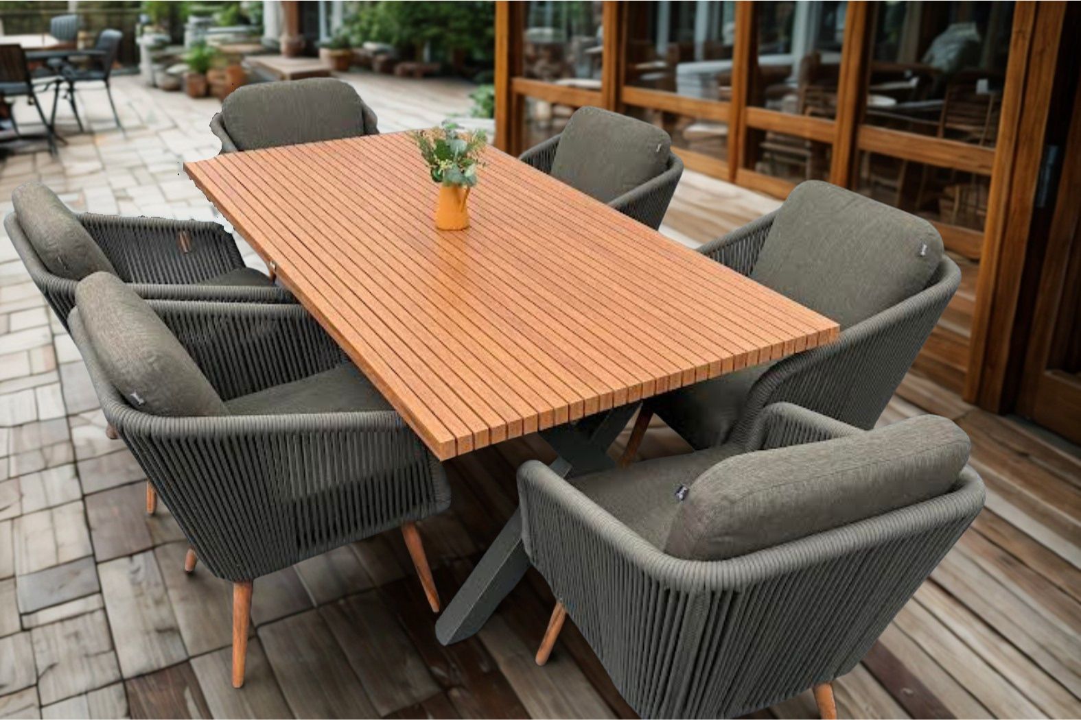 The Hartman Eden Dining Set Juniper includes a three-year structural warranty for reassurance. Furthermore, the Juniper tone pairs effortlessly with modern garden spaces, giving your patio a fresh, elegant look.