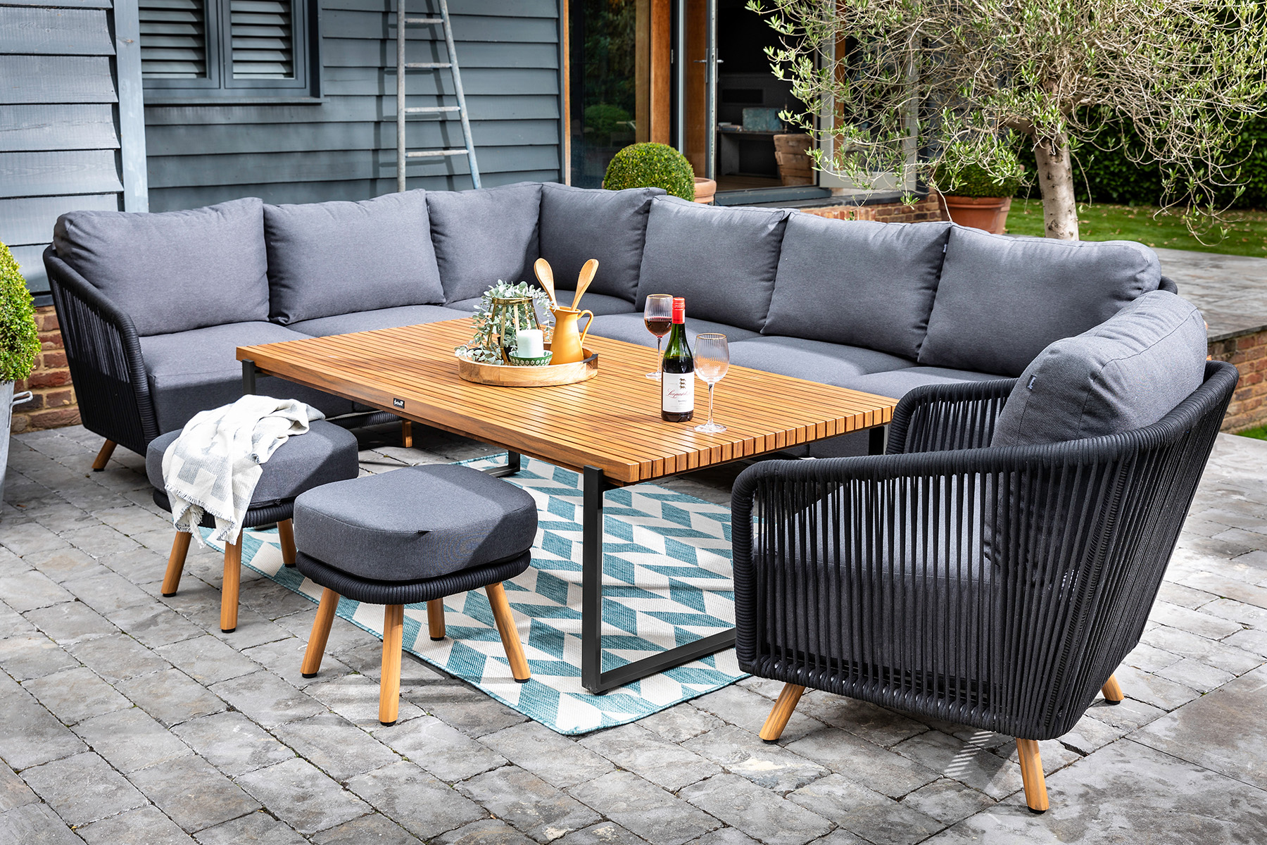 - Elegant colourway: Black Noir cushions, Raven black rope, Carbon frame
