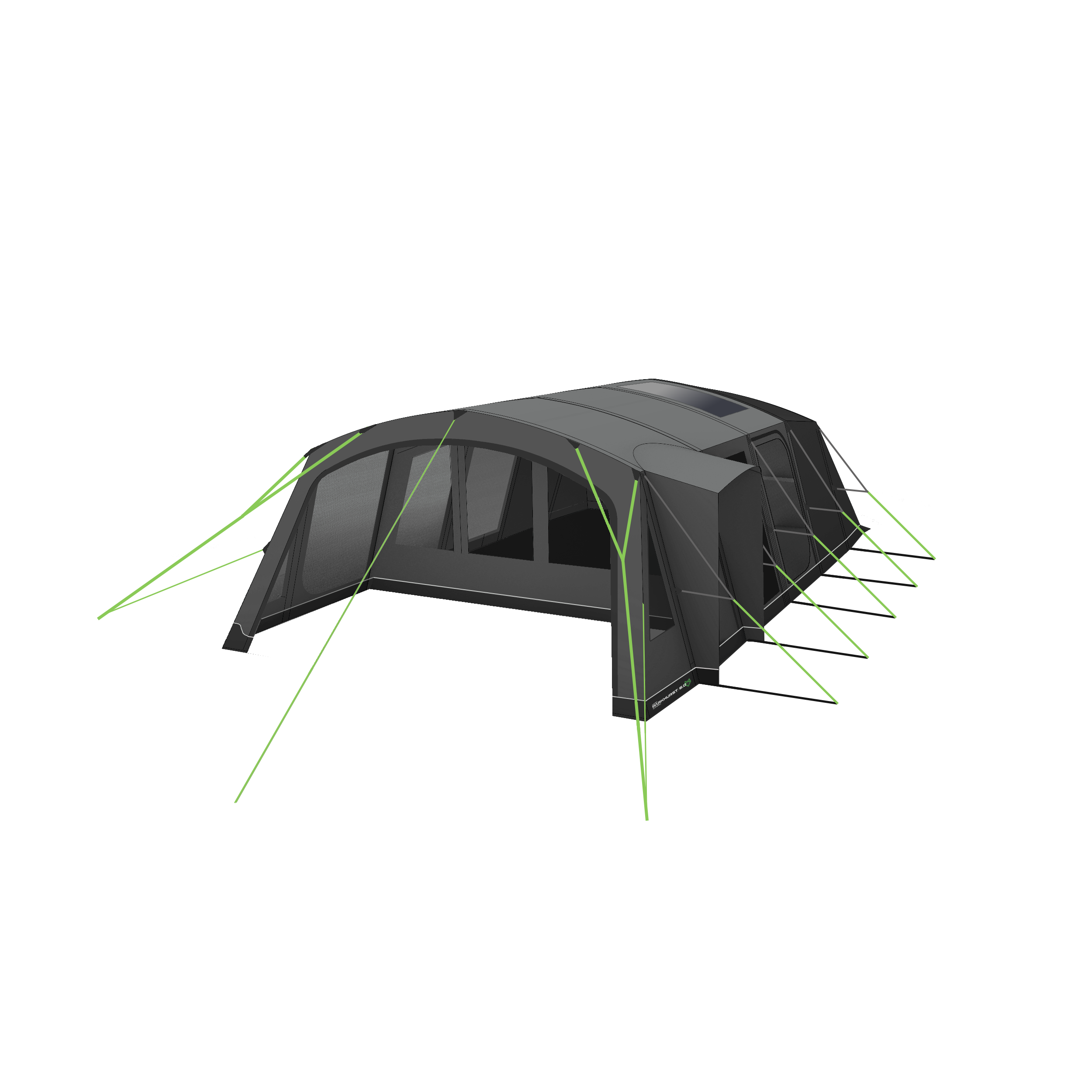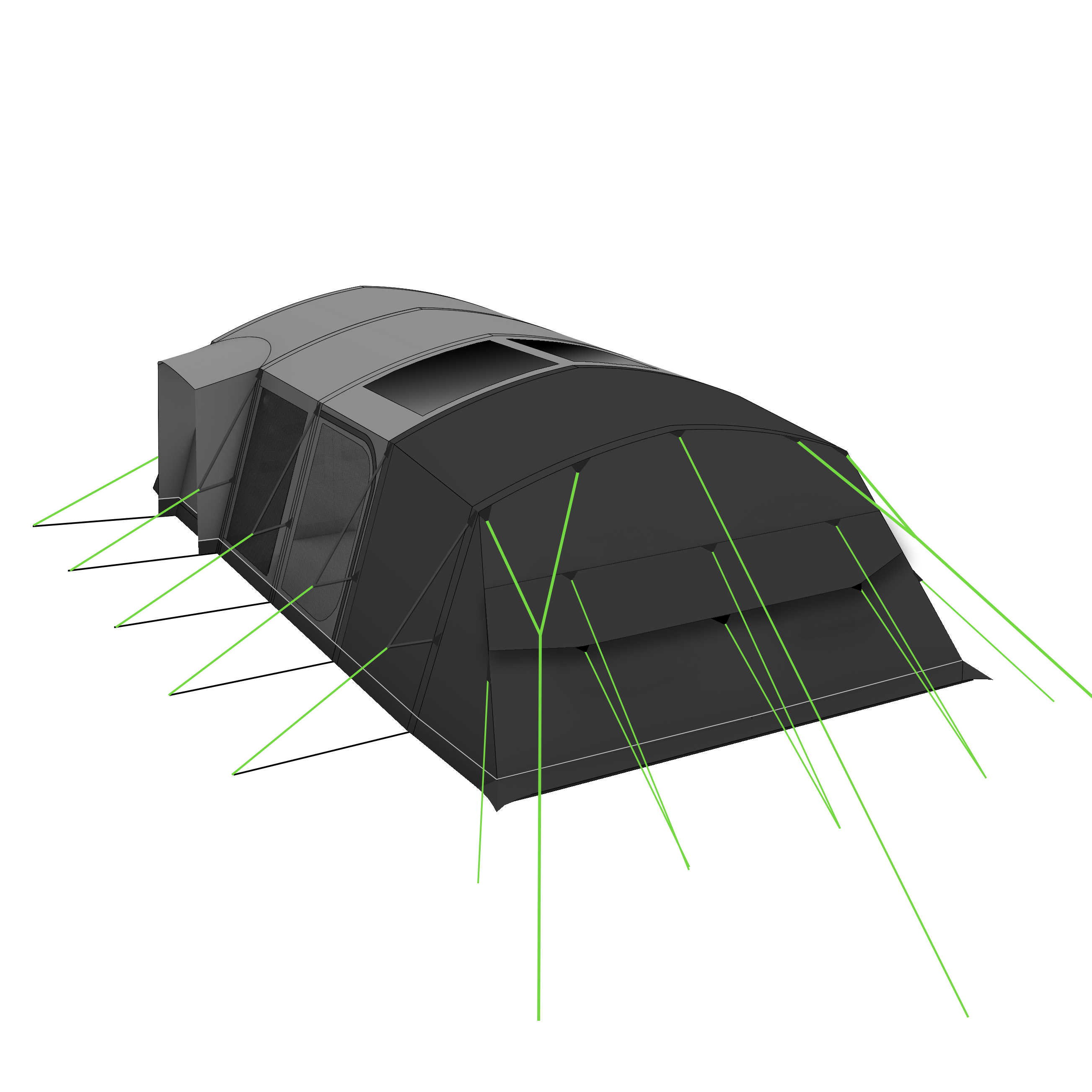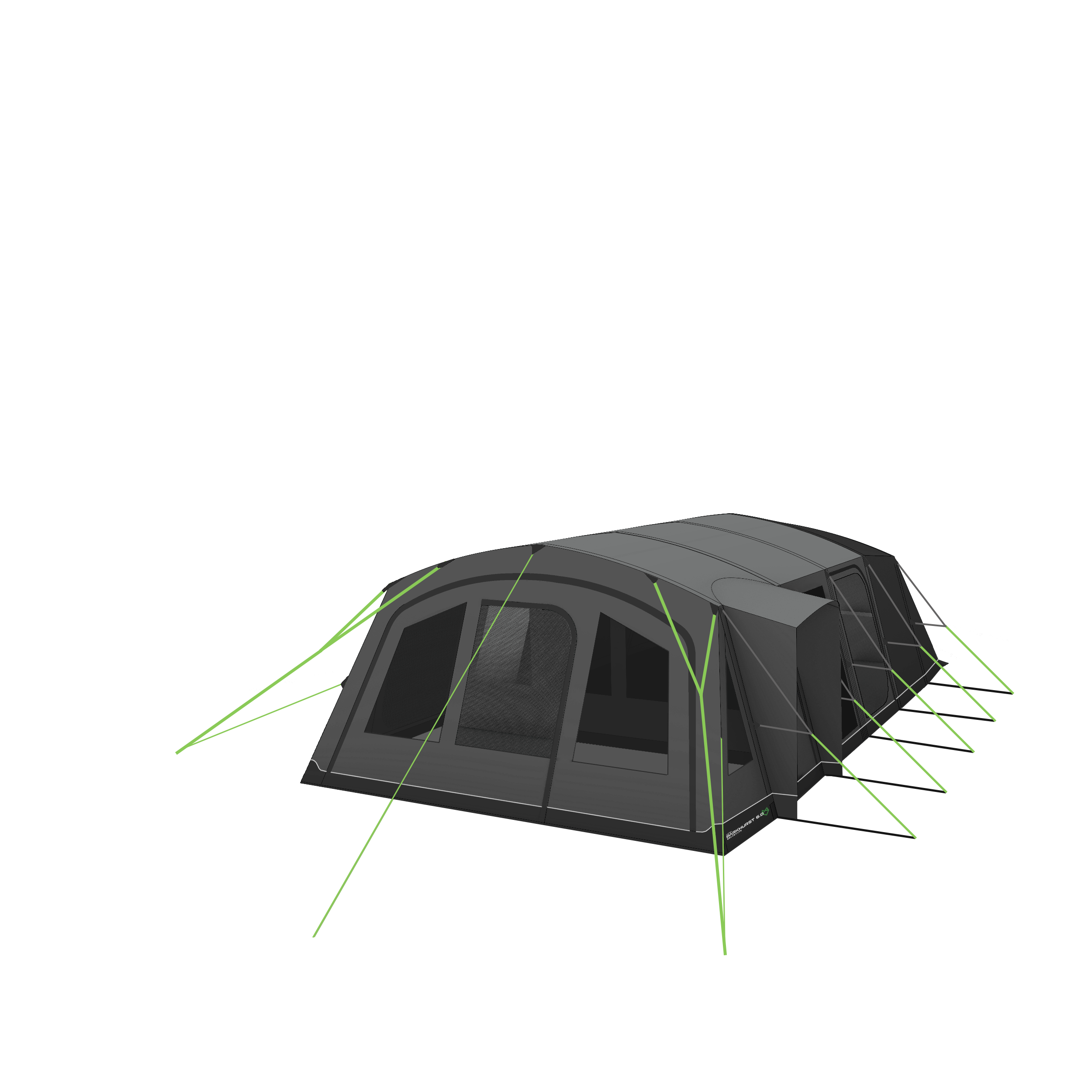 Inflating this 6-man tent takes minutes, and deflating is just as quick. The ‘DURA-Air’ Tubes provide unmatched sturdiness, tested to be over 200% stronger than standard TPU. Built-in pressure release valves prevent over-inflation from pumping or temperature changes.