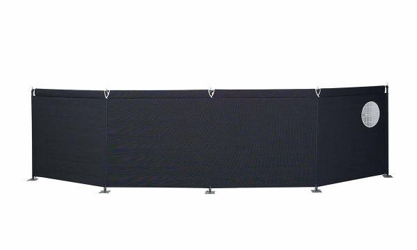 The 4-sided design spans 460 cm in total width, broken into four panels of 115 cm each, with a height of 110 cm. You can angle the panels to form curved layouts or straight lines depending on wind direction and site layout.