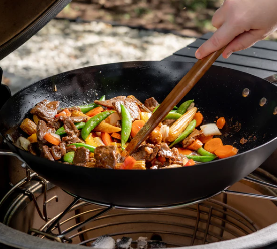 Expand the versatility of your Kamado Joe® ceramic grill with the Kamado Joe Karbon Steel Wok for Classic Joe and Big Joe Grills. Perfect for savoury stir fry as well as simmering and steaming, this pre-seasoned Wok is ideal for those who want to enhance their kamado-style cooking capabilities. Add the Karbon Steel Wok to your Kamado Joe arsenal for an elevated and seamless charcoal cooking experience.