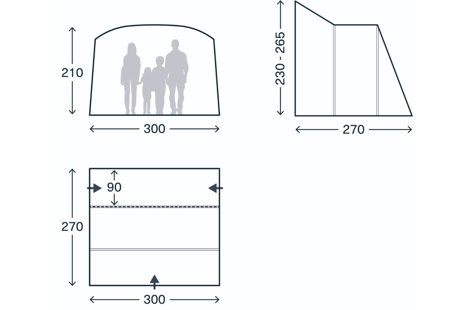 This Mid version suits vehicles with a 230–265cm connection height, making it a great choice for many taller campervans and panel van conversions. The sewn-in groundsheet helps keep the interior protected from damp ground and improves comfort across longer stays. However, it still feels open and welcoming thanks to the large windows, which brighten the living space during the day.