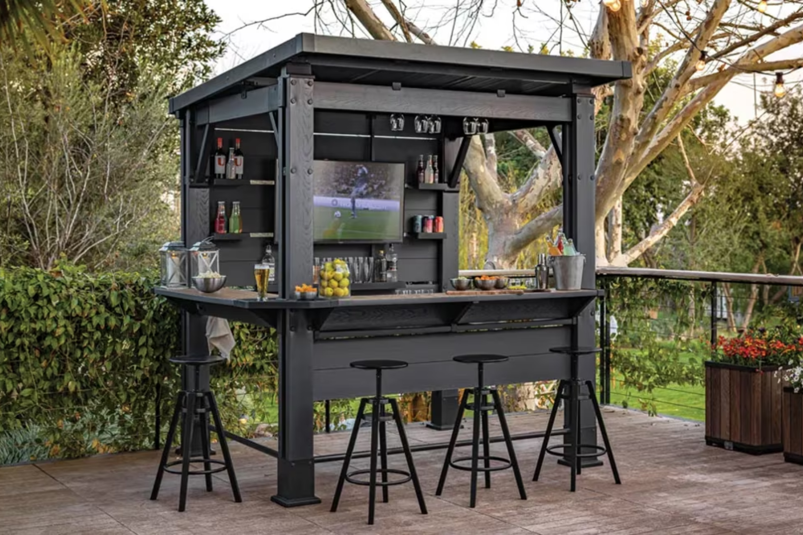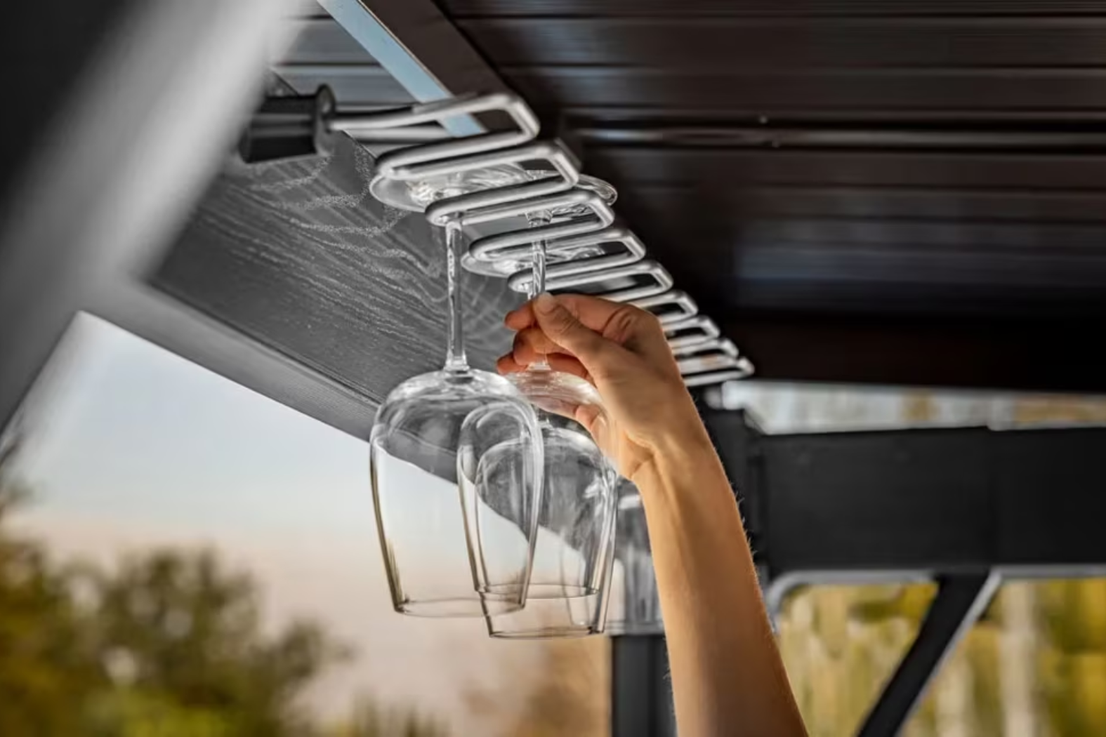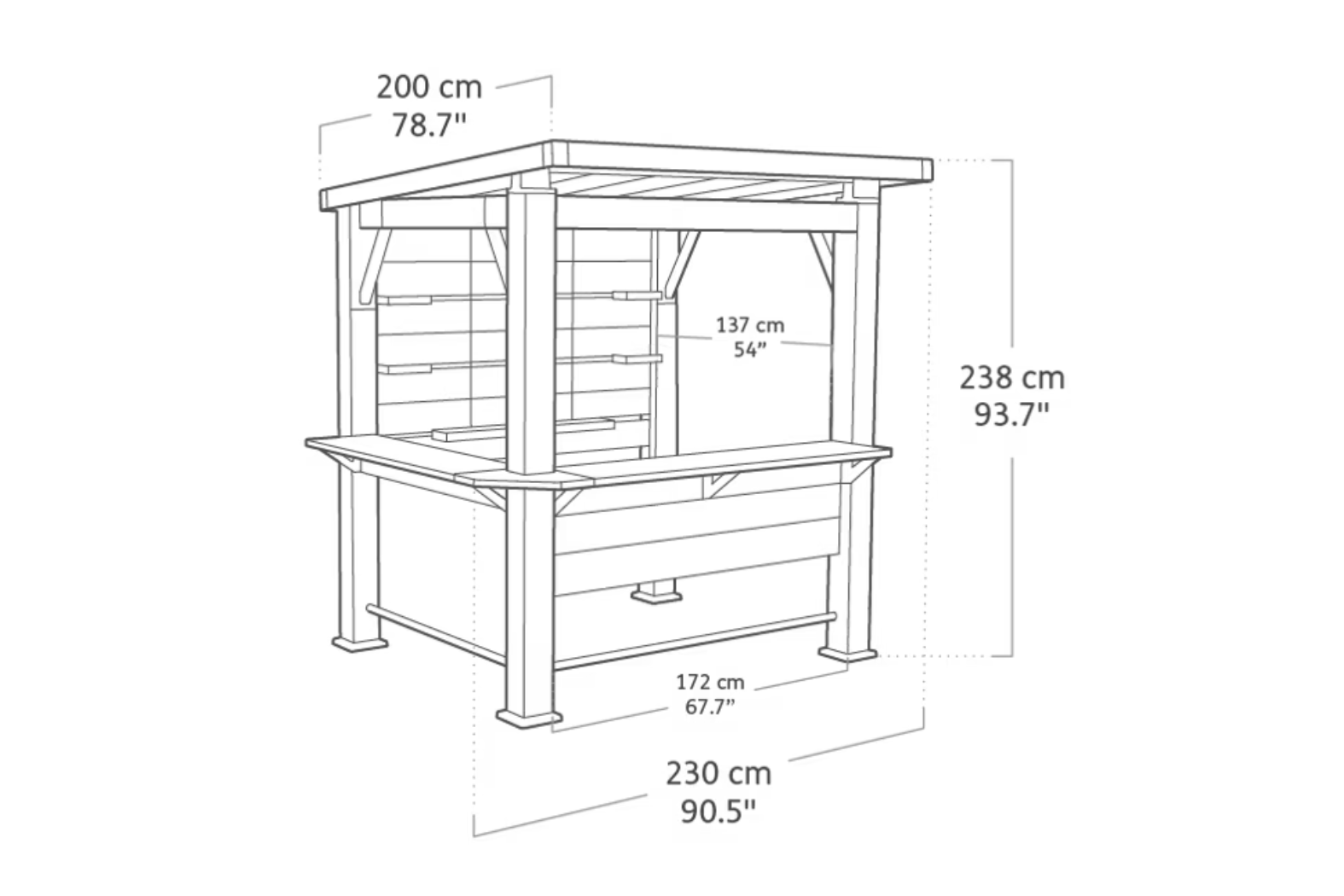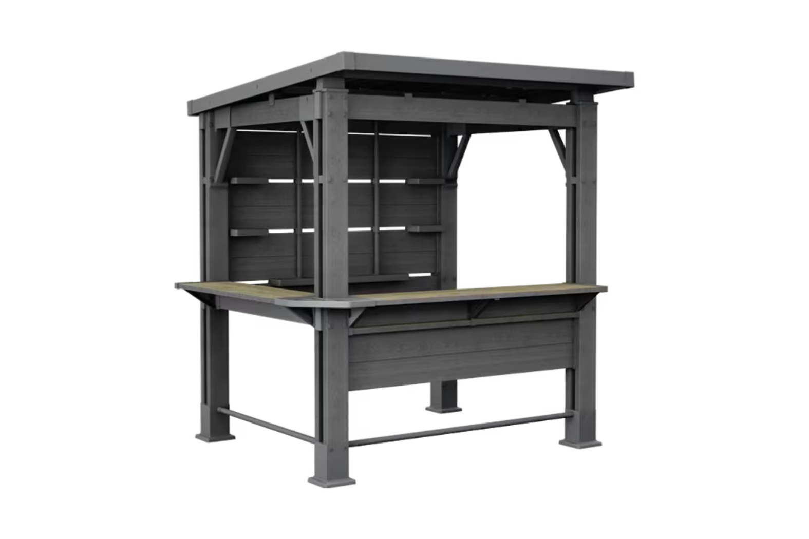 Beyond its striking design, this gazebo is packed with useful features. Built-in footrails add comfort while standing at the bar, while hooks and shelving help keep tools and accessories organised.