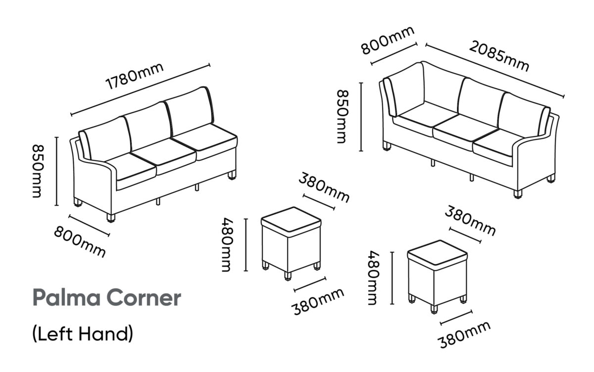 Corner Sofa: 2570 (L) x 2060 (W) x 900 (H)