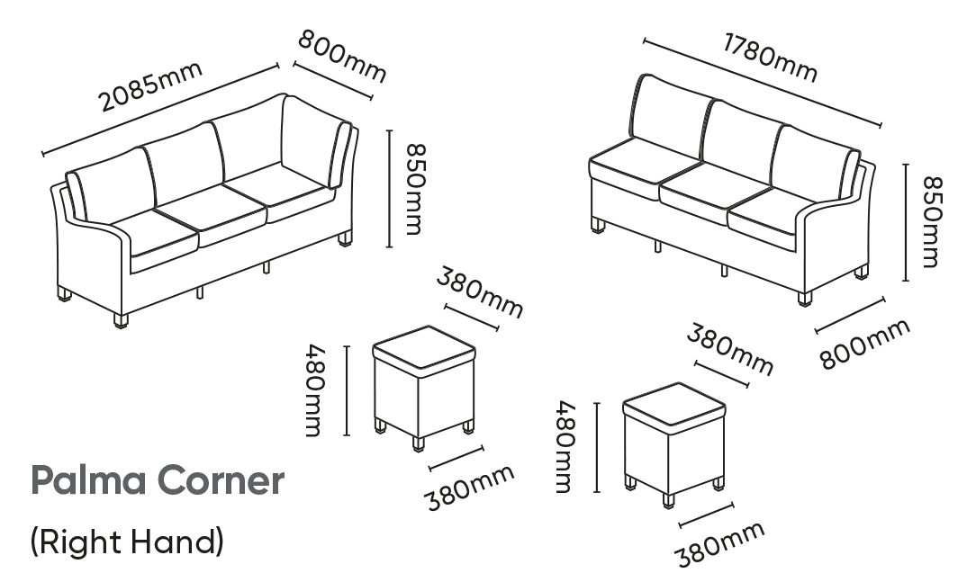 Material: Aluminium frame with weatherproof and UV-resistant 5mm half-round synthetic wicker, durable stain-resistant Stone-coloured cushions with new Weatherproofing.