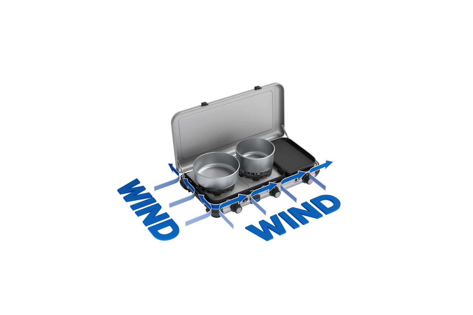The Campingaz Camping Kitchen 2 Multi-Cook Plus Stove gives you three independent cooking zones in one compact unit. Moreover, this dual-burner plus tube burner design allows you to boil, sauté and toast simultaneously. In addition, the Multi-Cook Plus Gas Stove uses FlameGuard technology to perform reliably under windy conditions. Furthermore, its all-in-one case design makes packing and travel easier than ever.