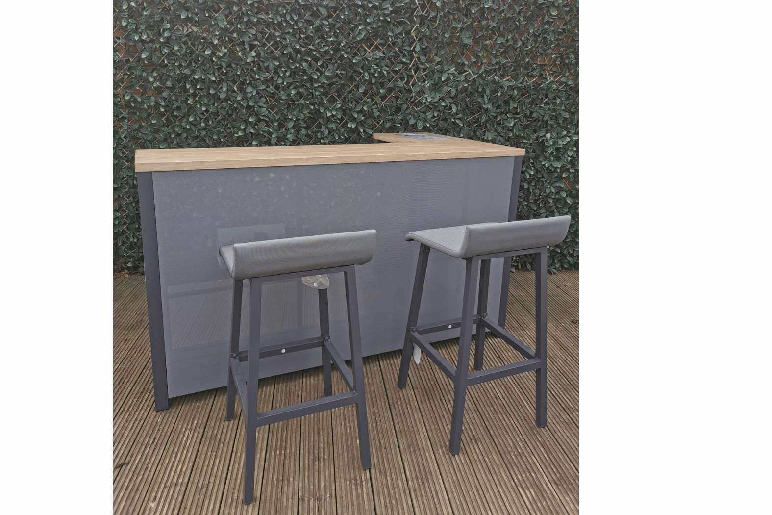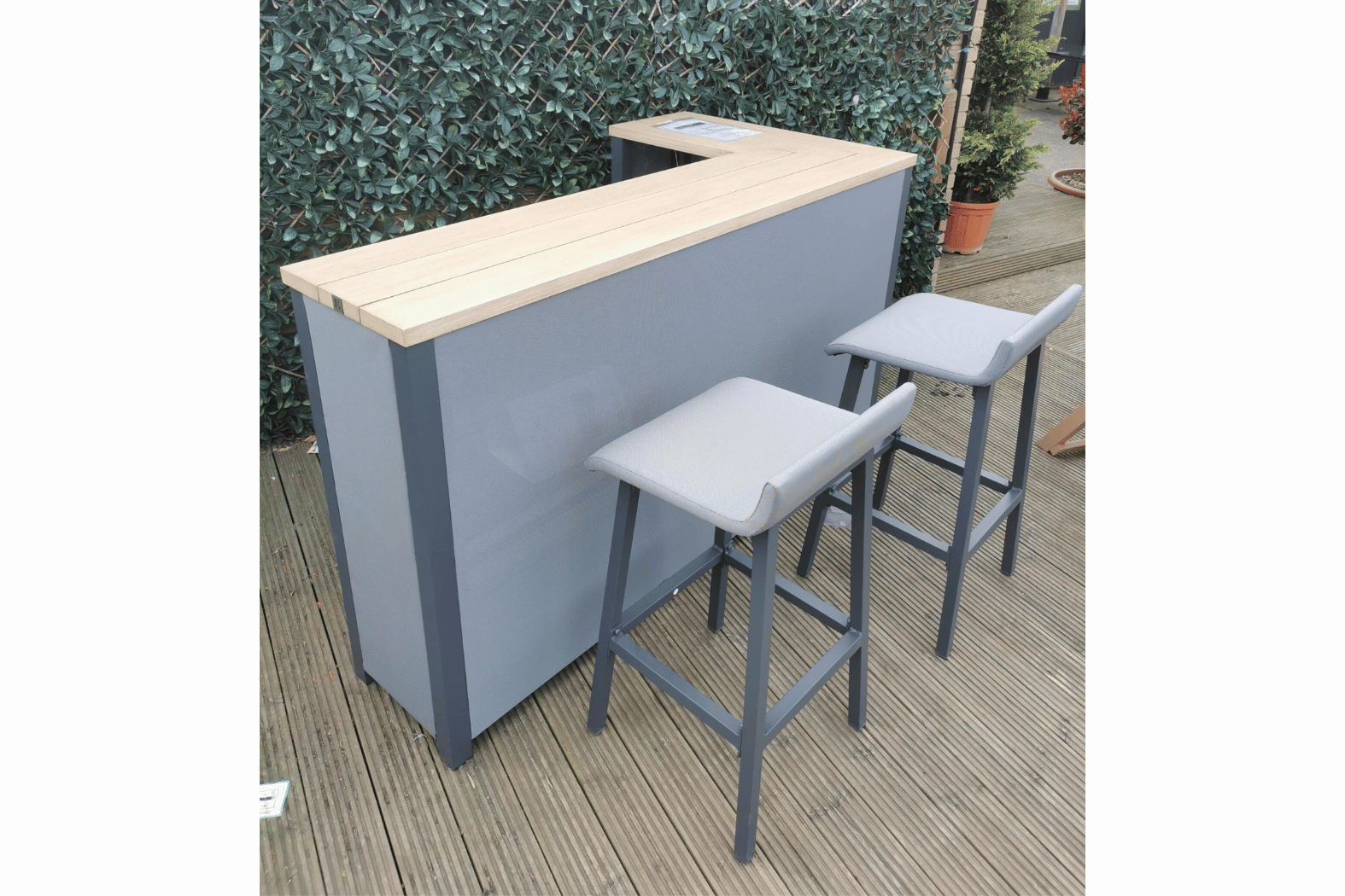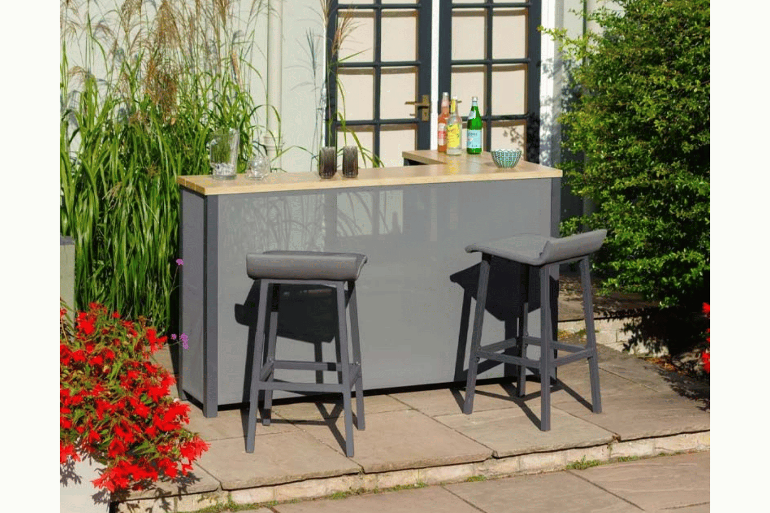The Leisuregrow Stockholm Bar Set with 2 Stools offers contemporary styling, practical design and a compact footprint ideal for modern outdoor living. Its sleek aluminium frame pairs beautifully with natural-tone ceramic-effect surfaces, creating a premium look suited to patios, terraces and outdoor kitchens. Moreover, the bar-height profile encourages relaxed socialising and casual dining. In addition, the comfortable stools tuck neatly under the table to save space when not in use.