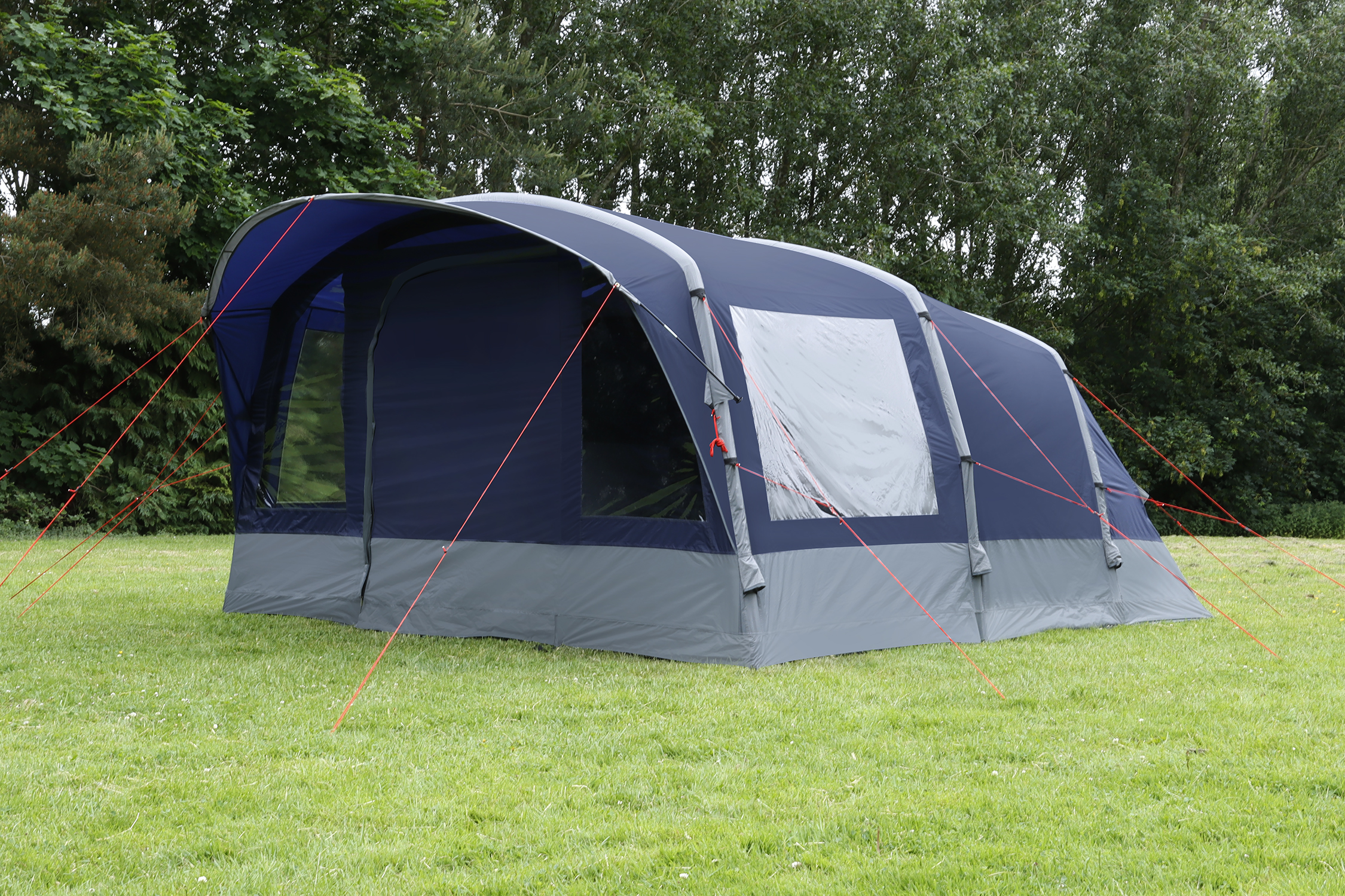 This air tent features inflatable air beams which act as the main supporting structure of the tent, large windows fitted with curtains to let in plenty of light during the day & privacy at night and a sewn-in groundsheet to keep draught and insects at bay.