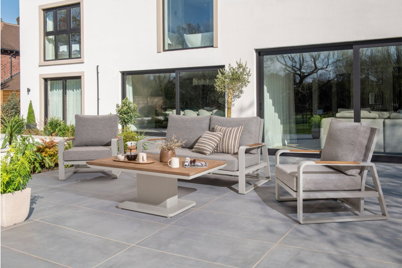 Choosing this Montana set means investing in both style and practicality. Furthermore, the adjustable table gives you daily versatility. In addition, the premium fabric and durable frame mean you spend more time enjoying your space and less time caring for it. Moreover, the sophisticated beige colourway lends an air of sophistication that works across seasons.