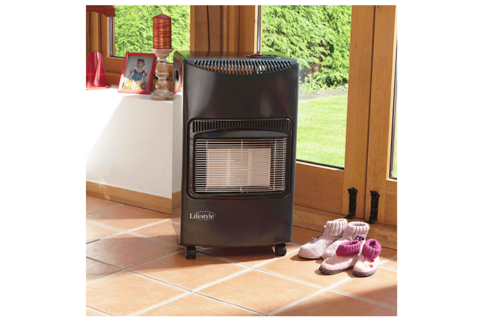 This indoor cabinet heater features smooth-rolling castors for easy movement between rooms. Moreover, it comes complete with a gas hose and a 21 mm clip-on butane regulator to simplify setup. The compact dimensions allow it to fit into tighter spaces, while the elegant grey finish complements contemporary interiors. In addition, the safety features mean you can rely on it for regular home use.