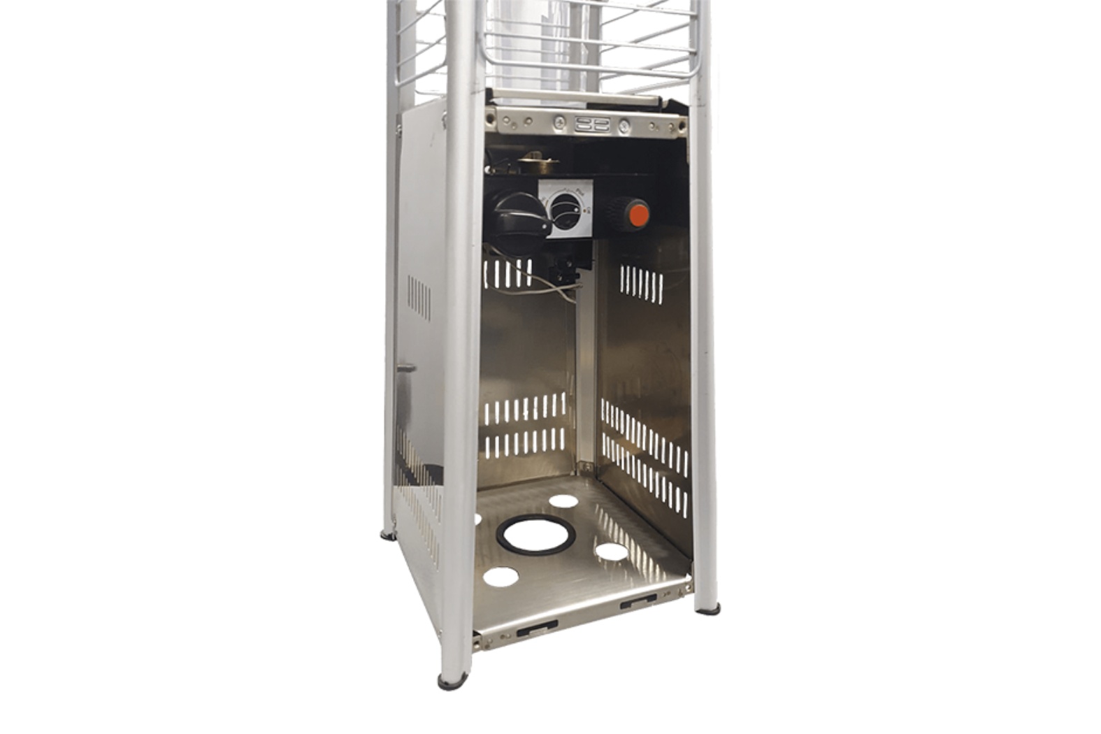 The heater’s build includes a stainless steel housing and protective mesh and grills to shield the flame and enhance safety. A quartz glass flame tube is also incorporated to maintain clarity and performance.