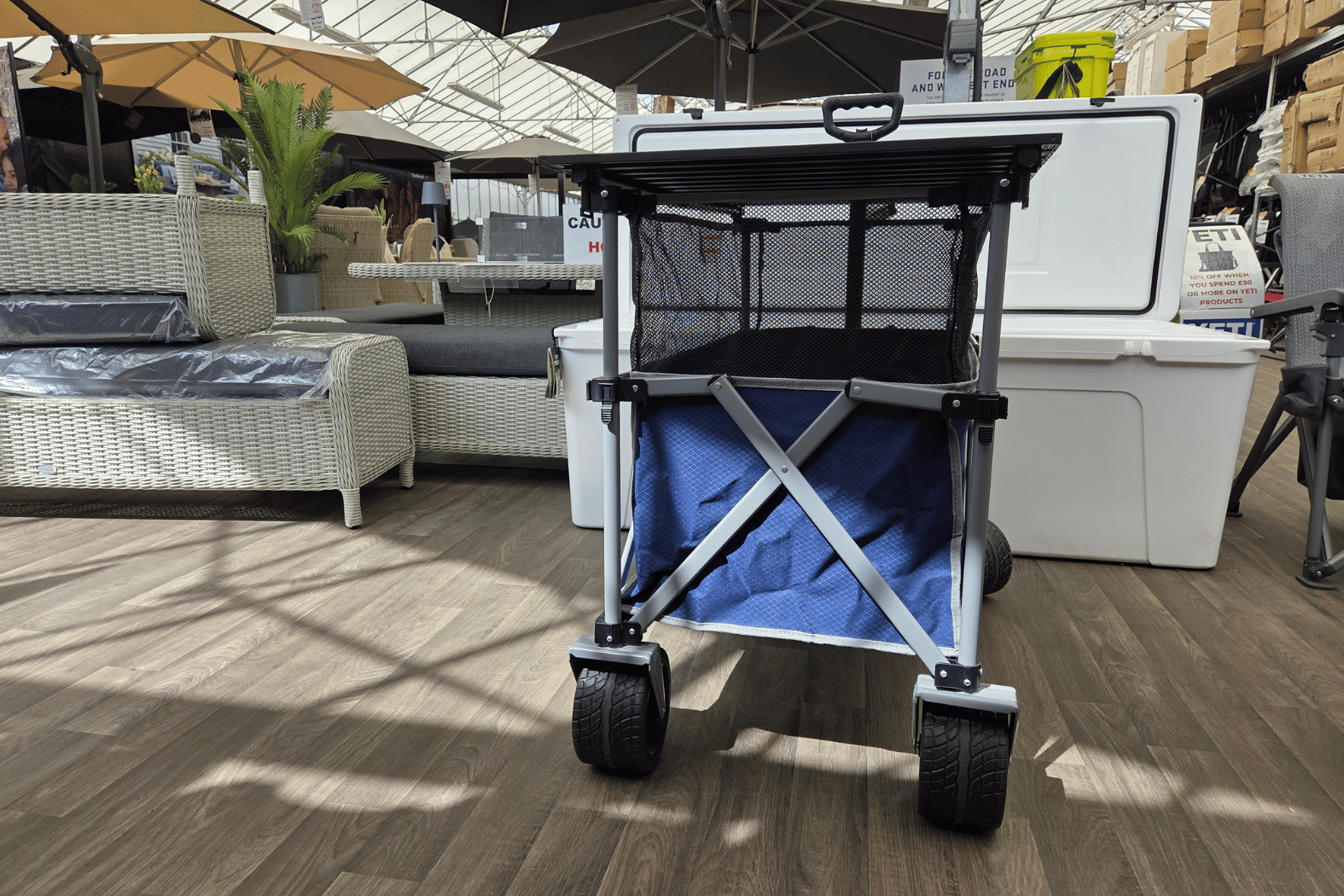The Lifestyle Palmo Wagon C/W XL with Tabletop is an excellent choice for a stable and robust wagon that can double as a table, saving you space and weight on carrying extra items.