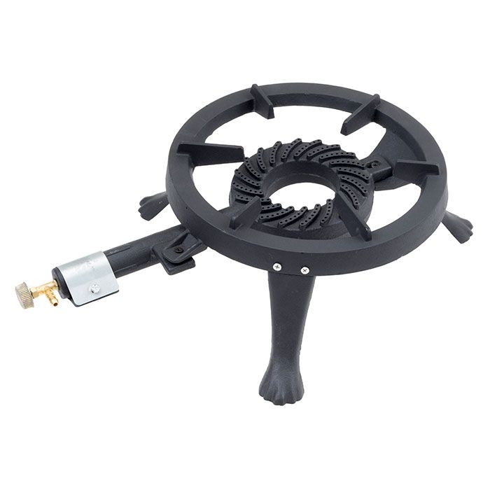 This 8kW Cast Iron Boiling Ring has a single burning ring and brass needle valve for precision control. They are ideally powered by propane gas and are suited for outdoor catering.