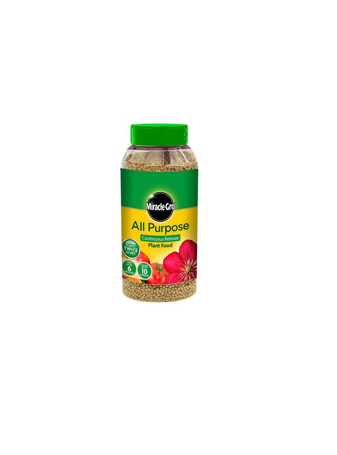 Miracle-Gro® All Purpose Continuous Release Plant Food has a temperature-controlled coating which regulates the release of nutrients when the conditions are right for feeding. One application feeds plants for up to 6 months, removing the need for regular feeding (versus unfed plants) and contains essential nutrients to give strong healthy plants.