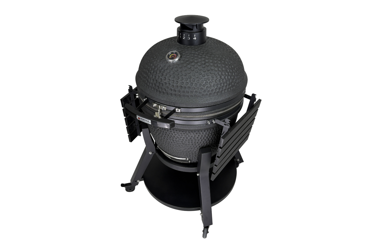 Finished in a sleek matte black bubble glaze, this kamado BBQ adds a refined and modern touch to any outdoor kitchen. At the same time, the all-black design helps hide marks from regular outdoor use.
