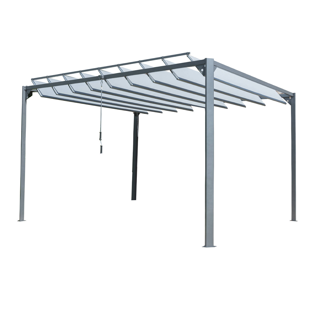With its adjustable slatted roof made of textilene, the Pandora 3×3.6m Leaf Gazebo Pergola lets you tailor sunlight to suit the moment. Simply rotate the handle to open the slats and enjoy bright sun, or close them to soften the light and create shade. This mechanism gives you seamless control over light and privacy throughout the day. Furthermore, the multi-directional roof improves comfort, making the gazebo ideal for lounging, dining, or relaxing regardless of sun angle.