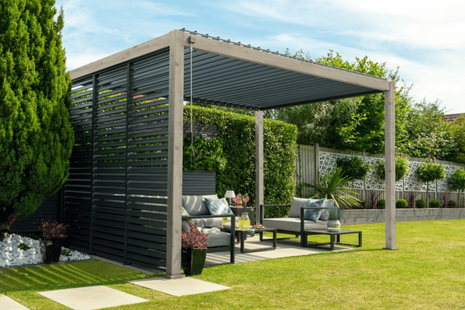 Whether you opt for the 3×3 m, 4×3 m or 6×3 m footprint, the Nova Titan Pergola offers generous coverage for dining sets, lounge furniture, or even hot-tub zones. In addition, the modular design supports optional extras — from sliding side screens to integrated LED lighting. Moreover, the adjustable roof pitch and free-standing installation provide flexibility to suit your site and style.