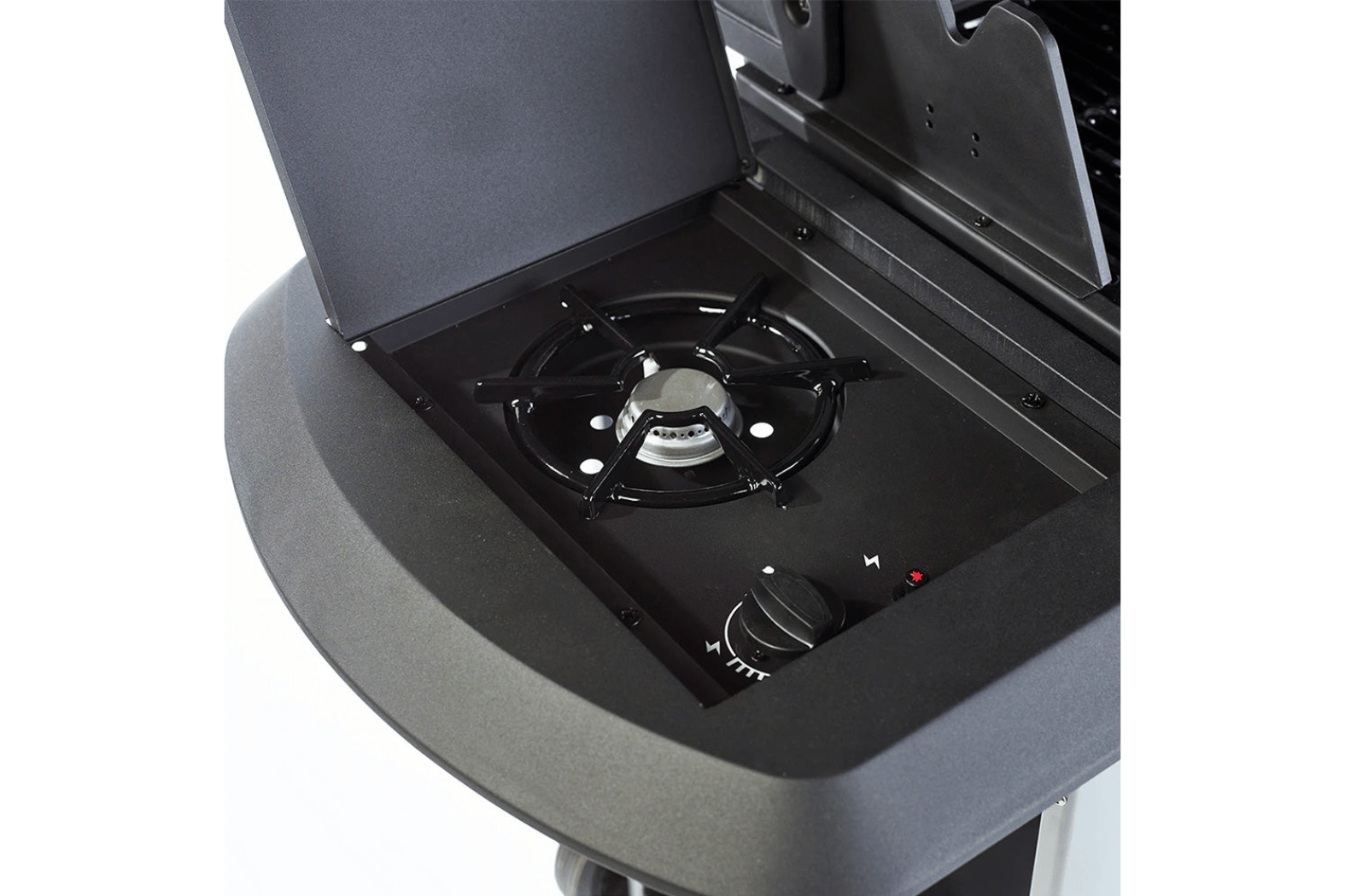 Built from high-quality materials, this Outback BBQ features a porcelain-enamelled roasting hood, tool rack, magnetic bottle opener, and an easy-clean drip tray. Moreover, the side burner adds functionality for sauces or paella. In addition, it comes with a hose, a propane regulator, and a jet ignition, so you can get grilling with minimal setup.