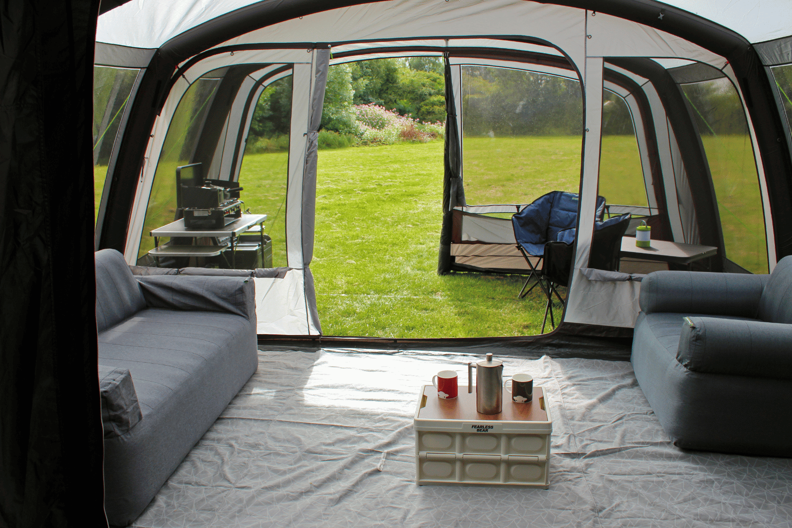 This tent features a large four-zone configuration: darkened bedrooms, a central living area, a deep front porch and a full side annexe. The side annexe includes a 2-berth clip-in inner, ideal for guests, teenagers or additional storage. Moreover, the 7-person main bedroom section uses Mid-Nite darkened fabric with a versatile 2/3/2 divider setup to improve sleeping comfort.