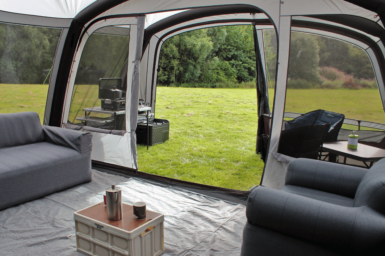 The Airedale 700 TSE includes a footprint groundsheet, side annexe inner tent, pump, peg set and a robust carry bag. Optional upgrades such as carpets, inner tents and uplighter shades allow easy customisation.