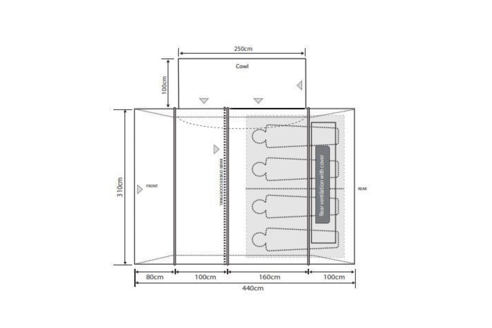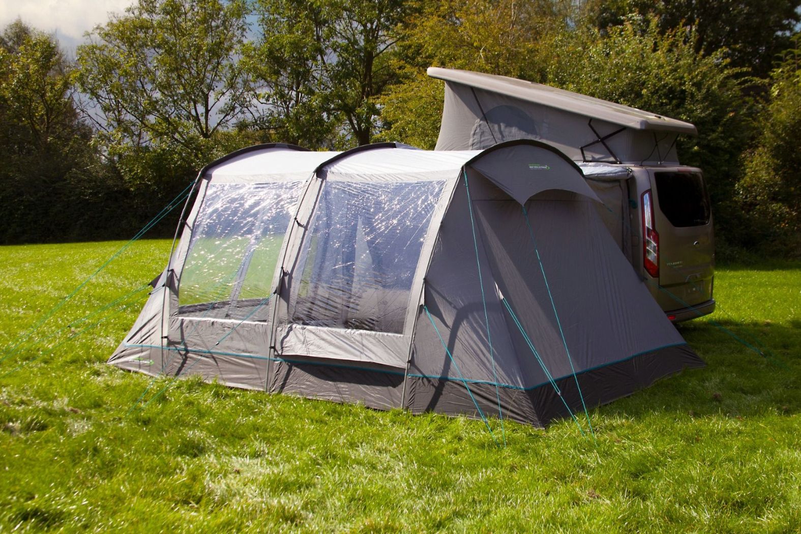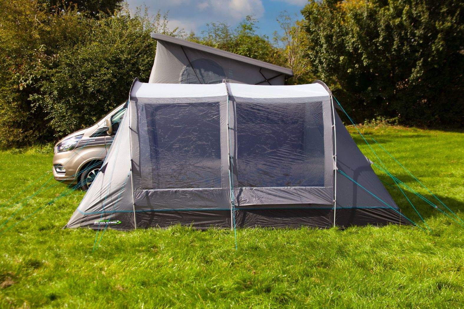 This Dura Tech fibreglass poled family drive away awning is available in two ergonomic cowl height options to offer a great fit to the vast majority of campervan or motorhomes. The unique design means it is one of the most versatile drive-aways on the market, offering access from all sides of the awning through the large roll back doors. New for 2025 is the option to zip a Bedroom Annex to the back of the awning, meaning your main living space is not affected if you are looking to add sleeping space.