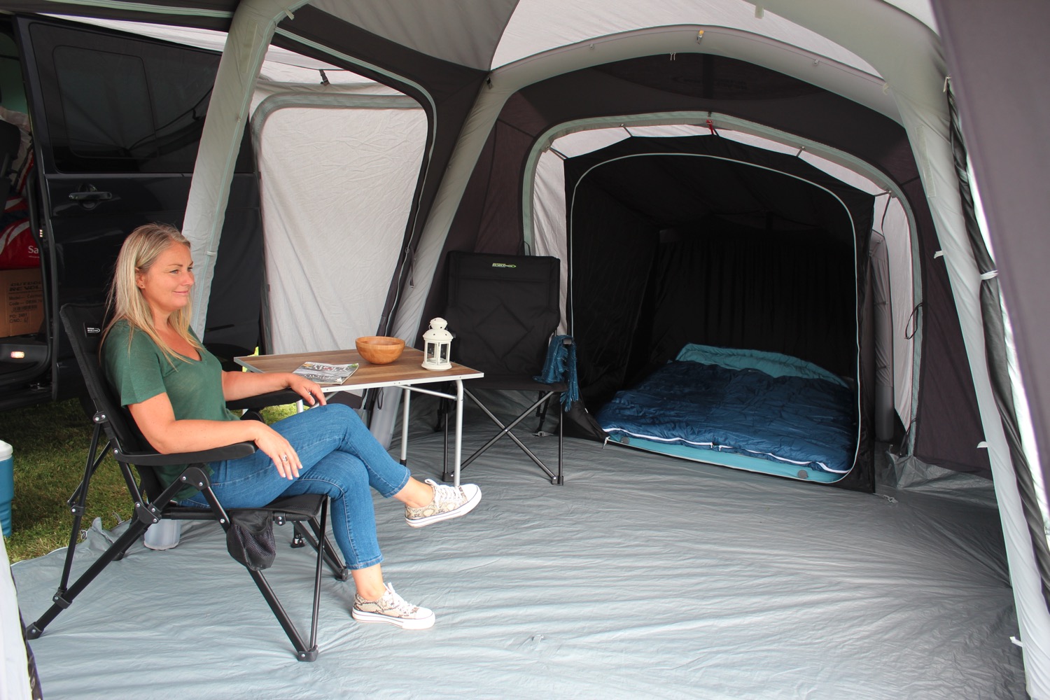 The Outdoor Revolution Movelite T3E & T4E PC Awning Annexe is a must-have for owners of a Movelite T4E & T3E PC awnings. Easy to fit, you simply zip out the rear panel on your awning and zip this in. Made from breathable polycotton like your awning, it’s a tall sleeping extension with a darkened 2-berth sleeping pod. Pitched simply, using a single air tube, this annex sleeps up to 2 adults or 3 children. Its sewn-in groundsheet lets you remove the inner tent to use the annex for storage or extra living space.