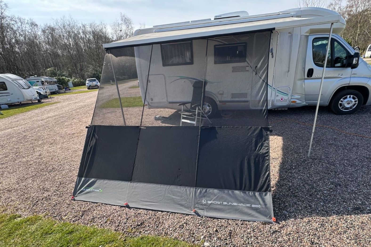 New for 2025 is the Outdoor Revolution Sport Pro Sunshade 260, a premium windout canopy mesh sun shade designed to protect from glaring sunlight. It easily attaches to the channel of your vehicle via our patented twin piping rail attachment system, and its lightweight makes setup a breeze. The premium mesh runs throughout the canopy, allowing light through but reducing glare, creating a comfortable environment beneath.