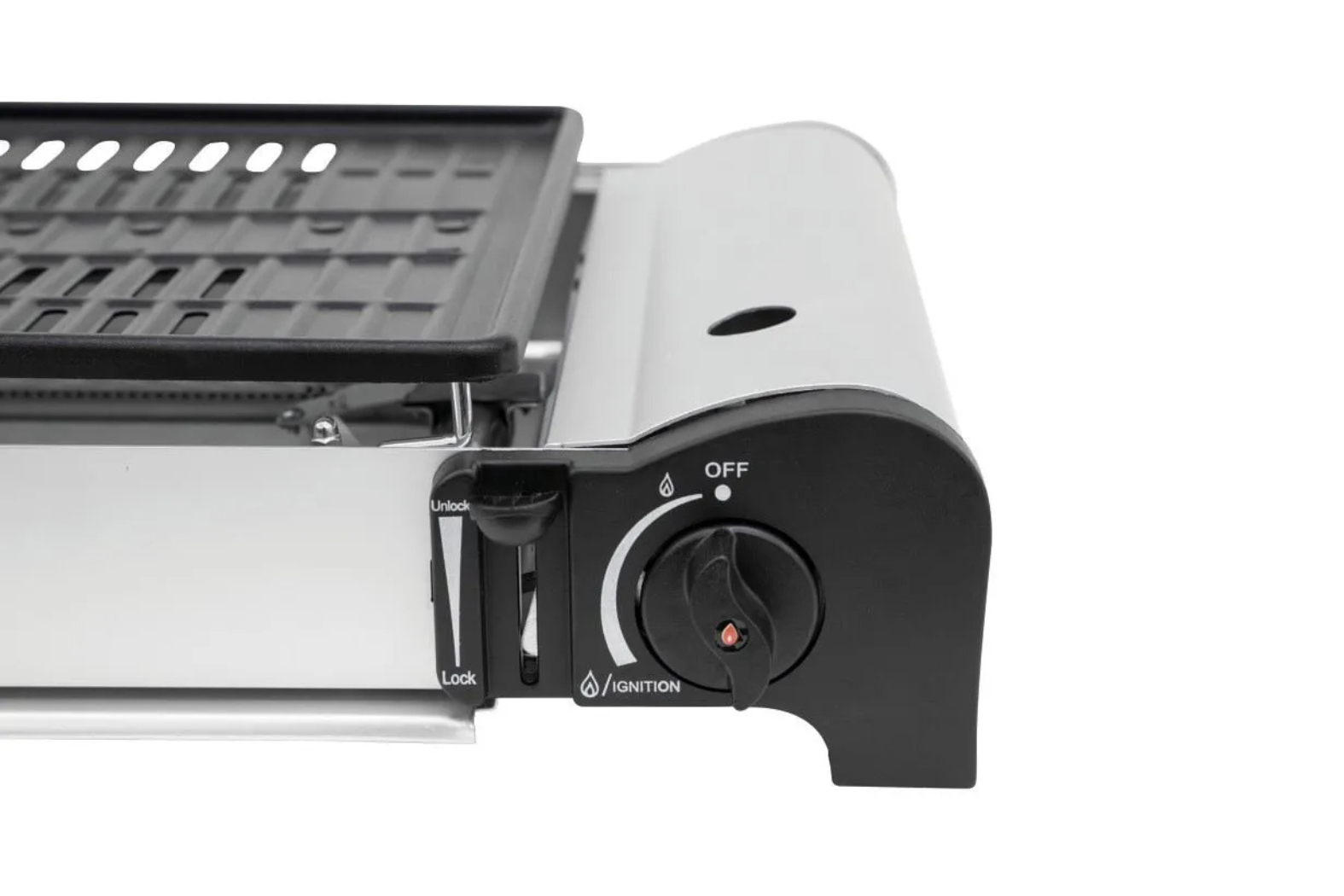 The Outwell Crest Gas Grill offers high mobility and convenience for campers and caravanners alike. Moreover, this compact grill makes barbecuing simple while travelling or enjoying the outdoors. In addition, the Crest Gas Grill weighs just around 2 kg and fits easily on tables or worktops. Furthermore, its foldable design and transport-friendly weight enhance usability on camping trips and garden outings.